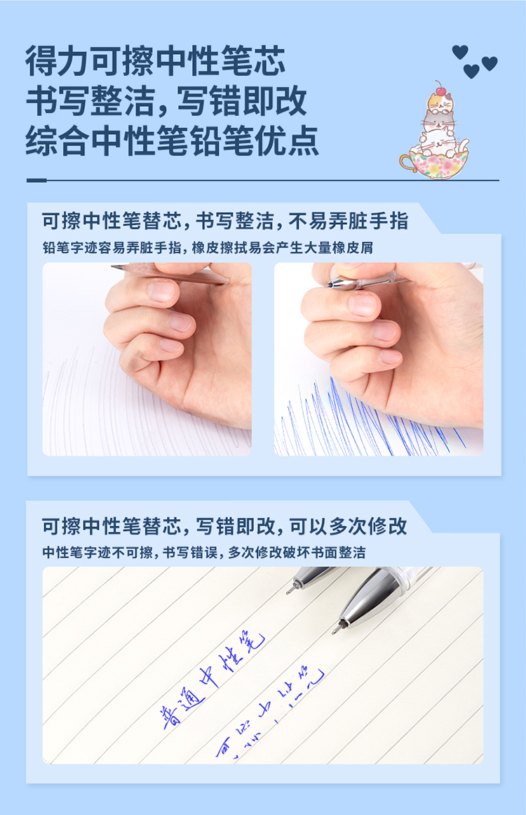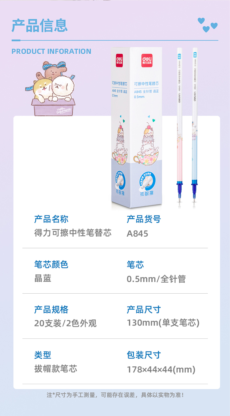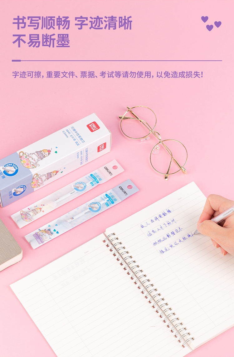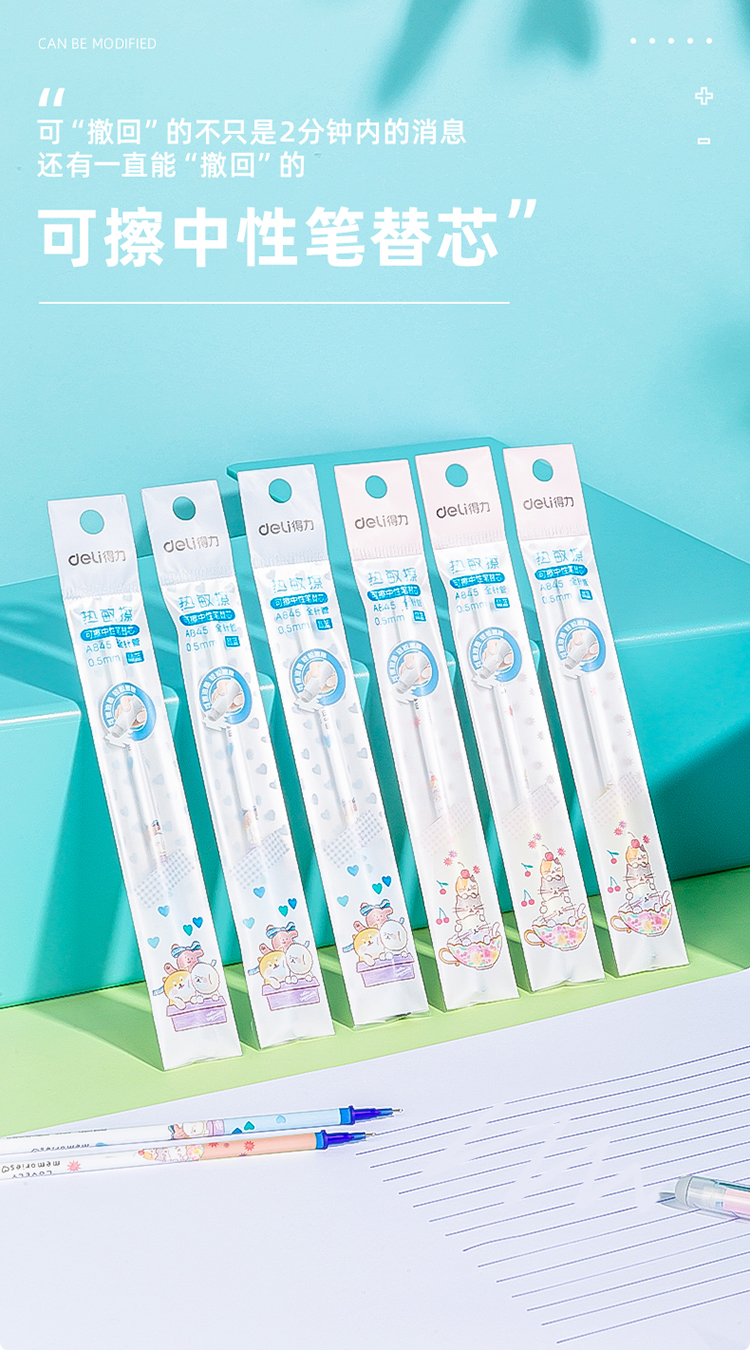得力(deli)文具0.5mm奇妙傘系列魔力熱可擦筆替芯 學(xué)生全針管中性筆水筆簽字筆替芯 晶藍 20支/盒A845 自營