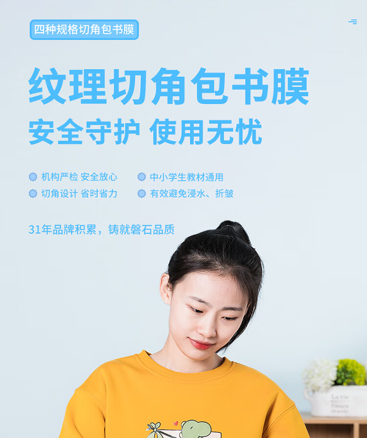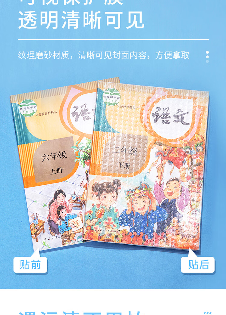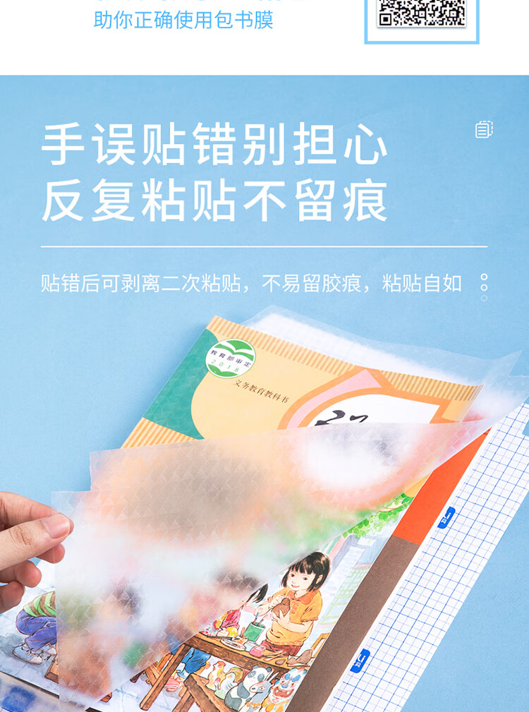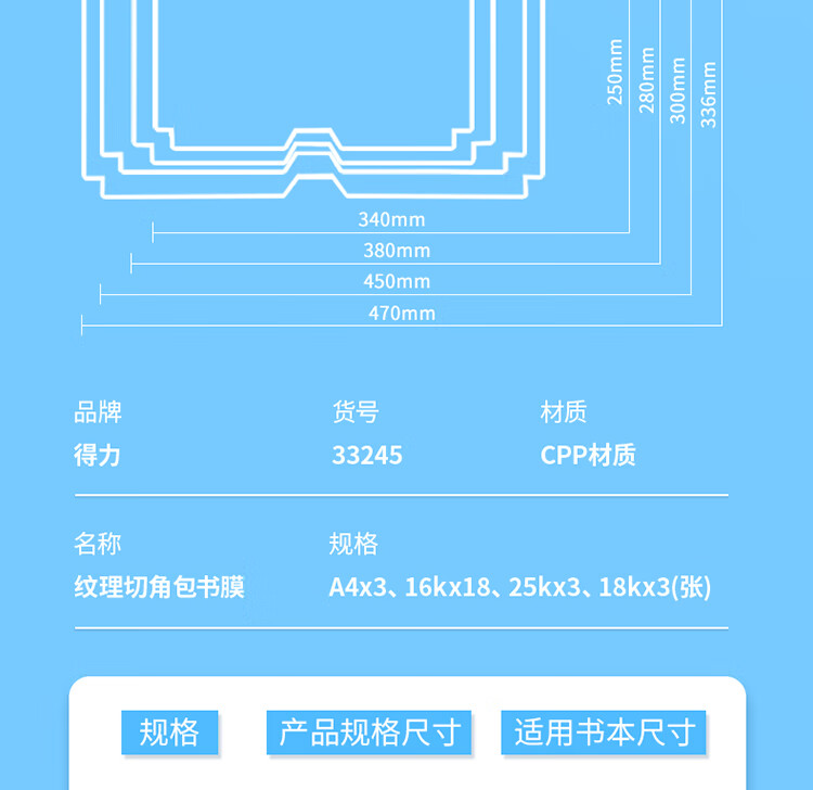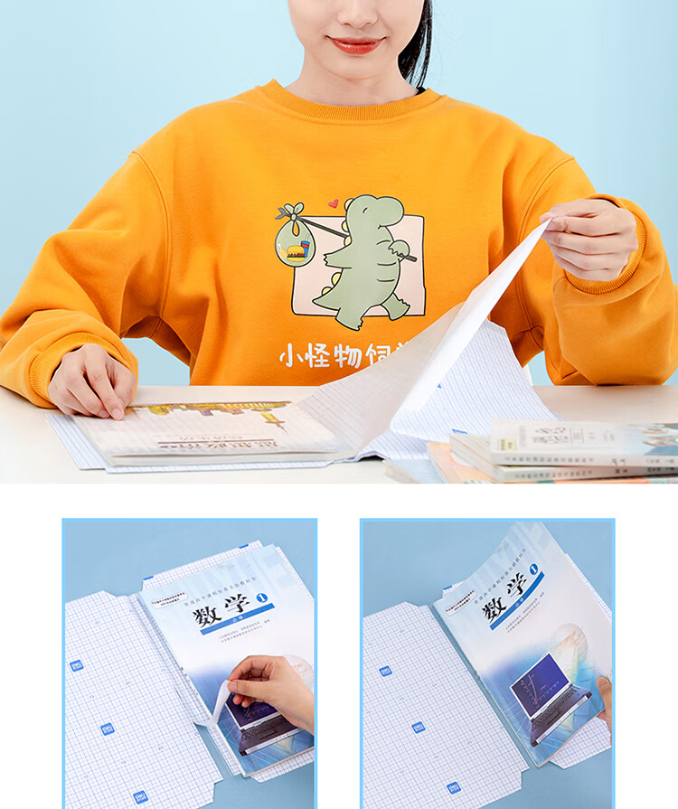 得力(deli)27張多規(guī)格透明磨砂帶切角自粘包書皮包書膜 菱形紋路防水學(xué)生書皮套裝 附帶姓名貼課程表 33245 自營