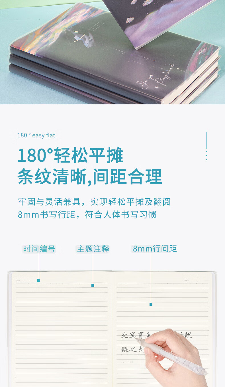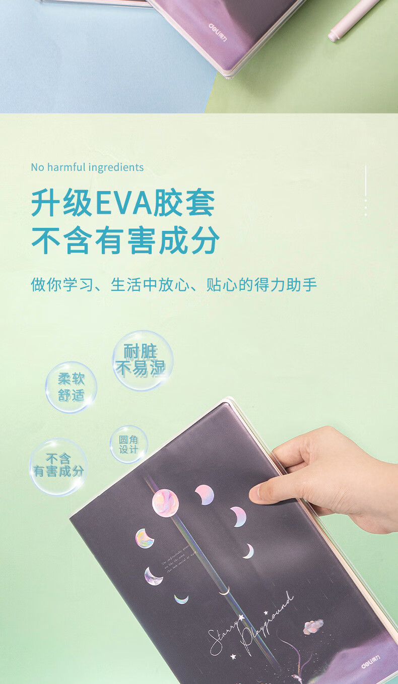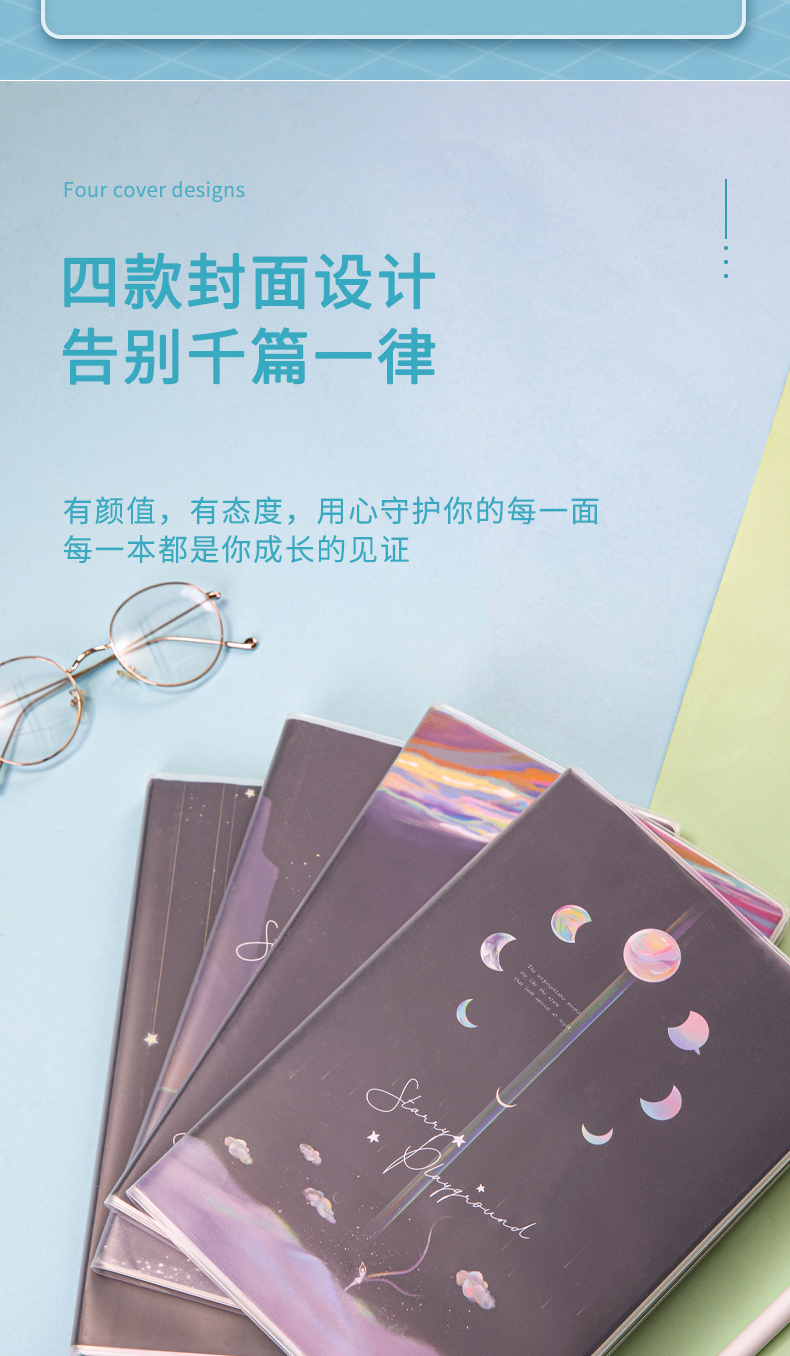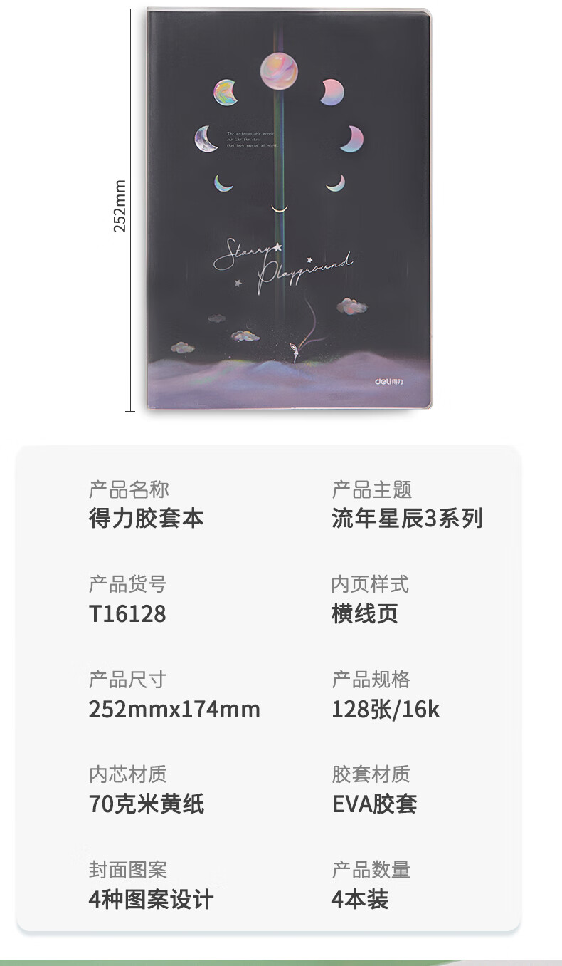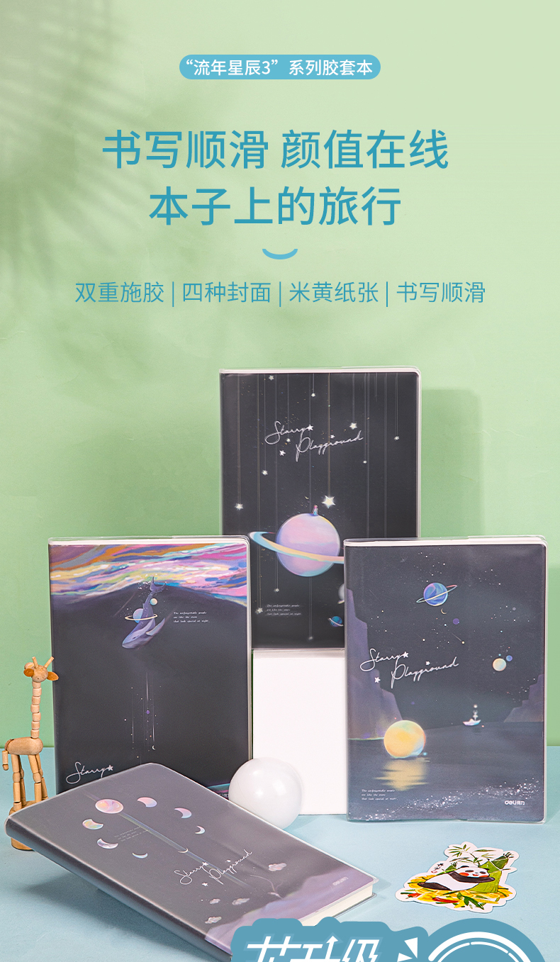得力(deli)4本16K128張流年星辰系列加厚學(xué)生膠套本套裝 軟抄本記事本日記本筆記本子文具 T16128 自營(yíng)