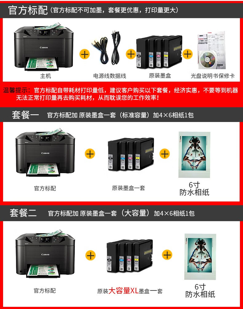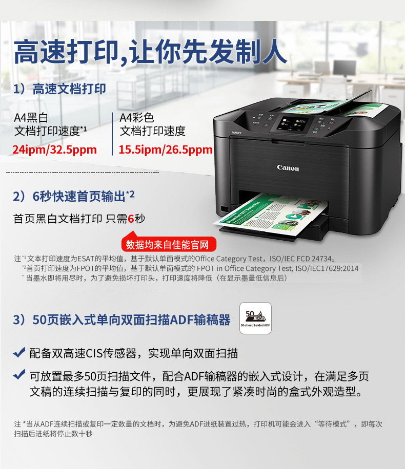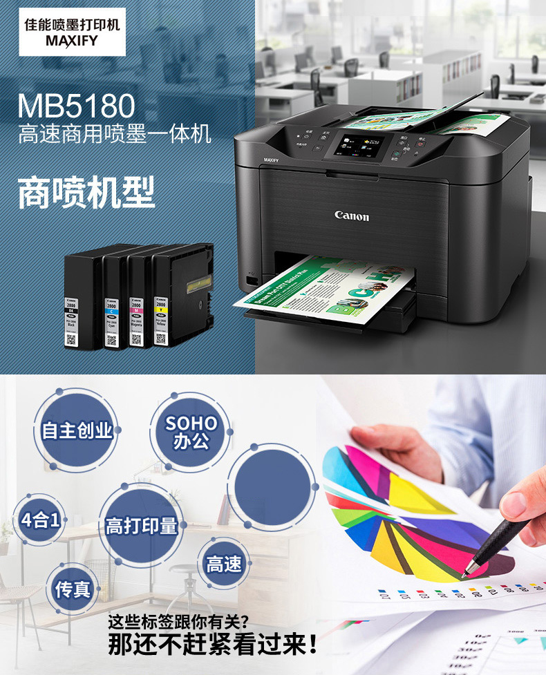 佳能(Canon)MB5180無線彩色商用噴墨雙面打印機一體機復(fù)印掃描傳真機 官方標(biāo)配 自營