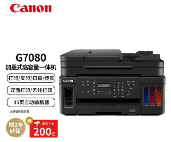 佳能(Canon)G7080大容量可加墨彩色多功能傳真一體機(打印/復印/掃描/傳真/作業(yè)打印/照片打印機 Wifi) 自營