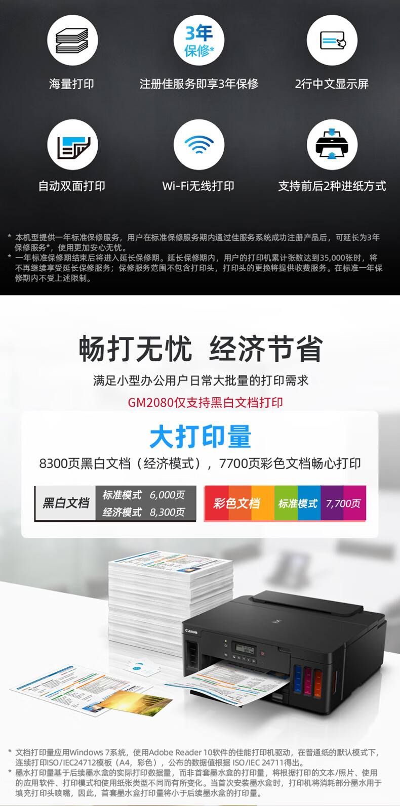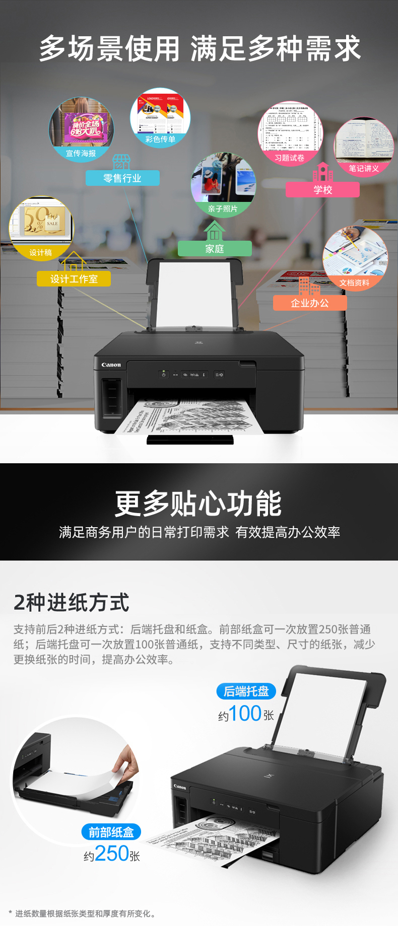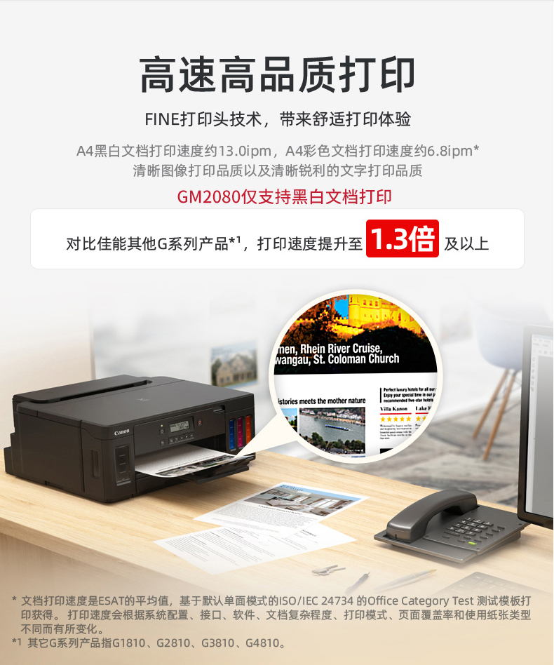 佳能(Canon)黑白噴墨打印機(jī)商用辦公文件無(wú)線墨家用打印機(jī) GM2080單 黑色單打印(雙面/無(wú)線/雙向進(jìn)紙) 自營(yíng)