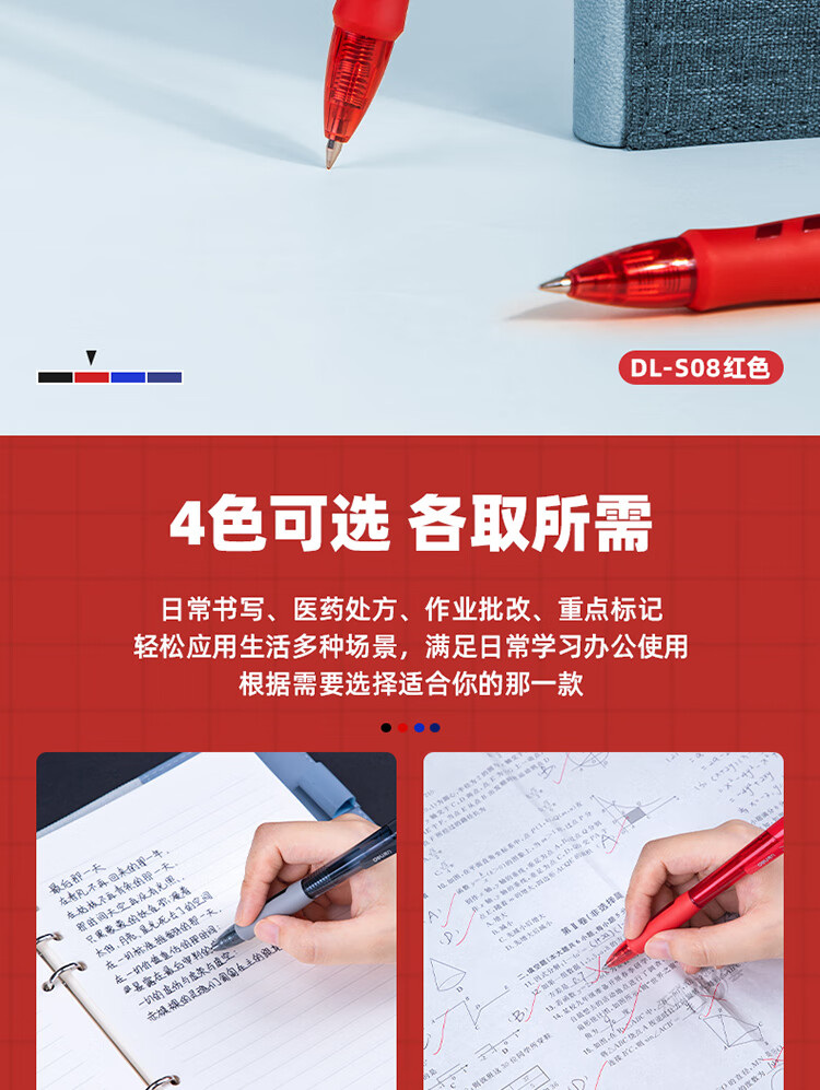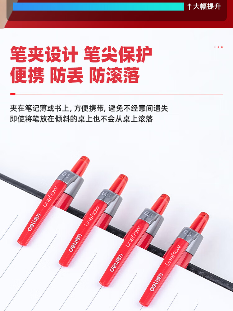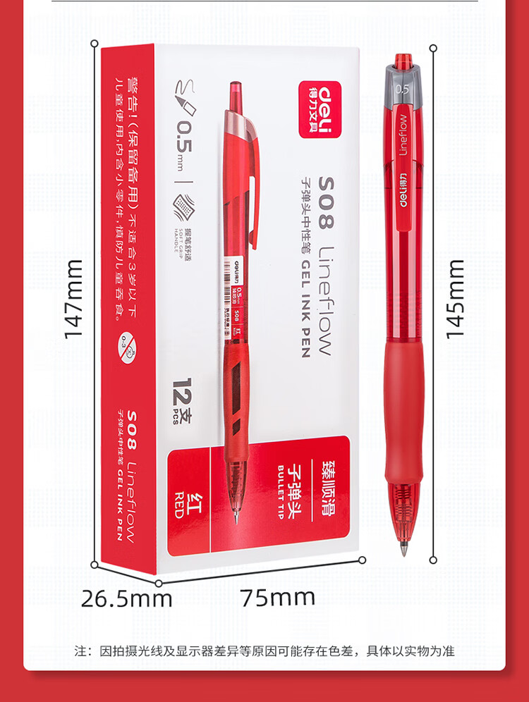 得力(deli)臻順滑中性筆簽字筆 0.5mm子彈頭按動(dòng)筆水筆 辦公用品 紅色 12支/盒S08 自營(yíng)