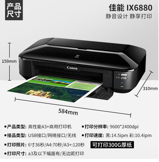 佳能ix6780/6880/ip8780彩色A3噴墨專(zhuān)業(yè)照片打印機(jī)商用辦公不干膠皮紋紙銅版紙wifi 無(wú)線版ix6880官方標(biāo)配【五色獨(dú)立墨盒】 自營(yíng)