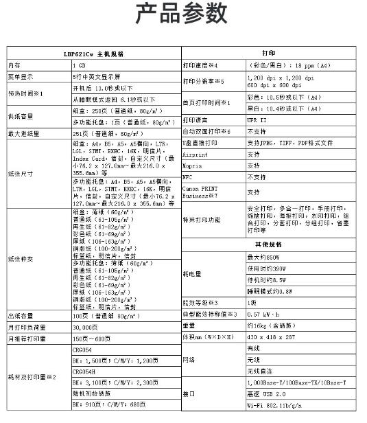 佳能(Canon) LBP621Cw A4幅面無線彩色激光單功能打印機(jī)(打印/大容量進(jìn)紙 商用) 自營