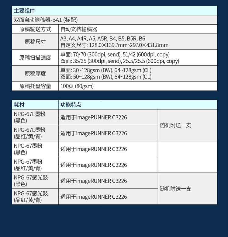 佳能(Canon)打印機(jī)辦公iRC3226 a3a4彩色復(fù)合復(fù)印機(jī)含輸稿器工作臺(tái)(雙面打印/復(fù)印/掃描/WiFi)3125升級(jí) 自營(yíng)