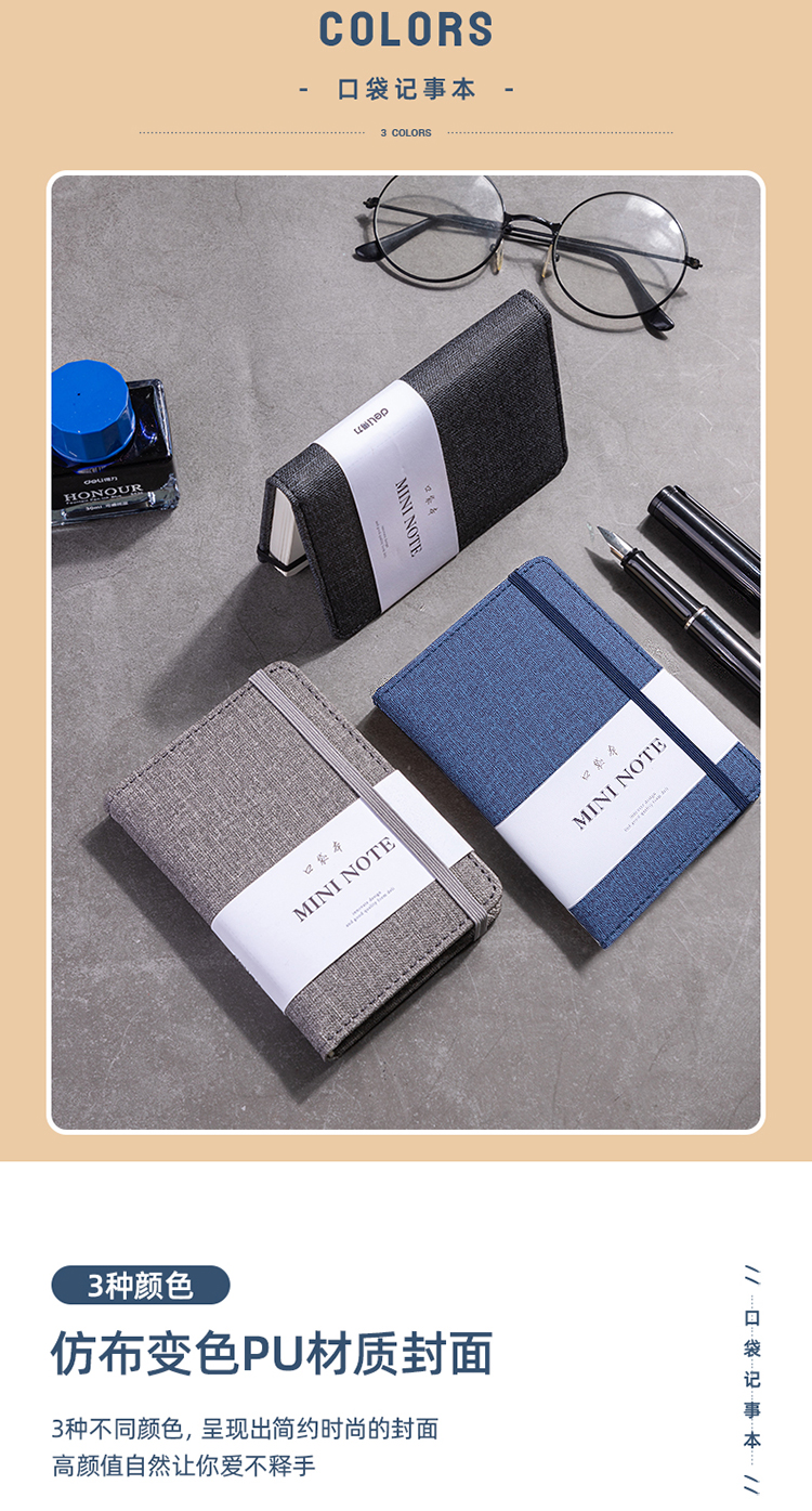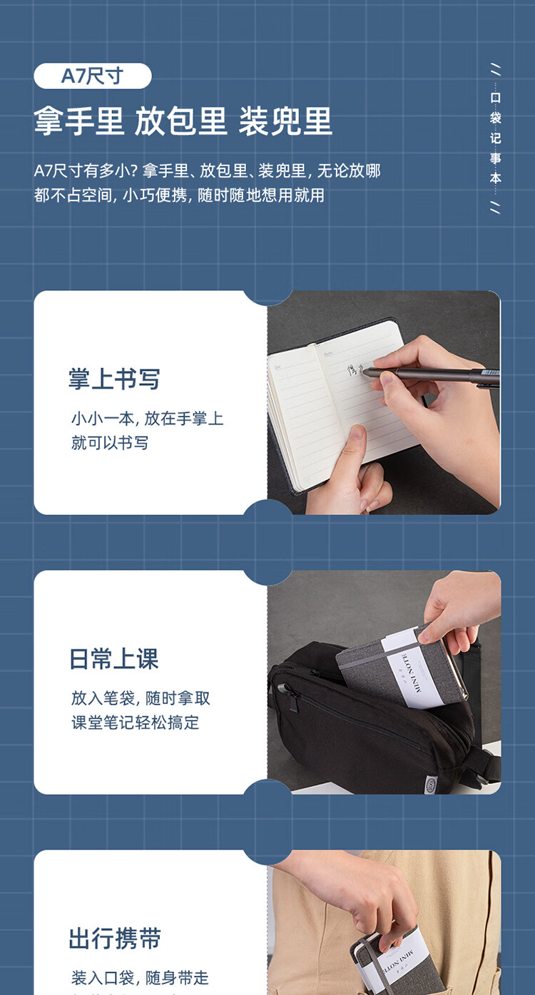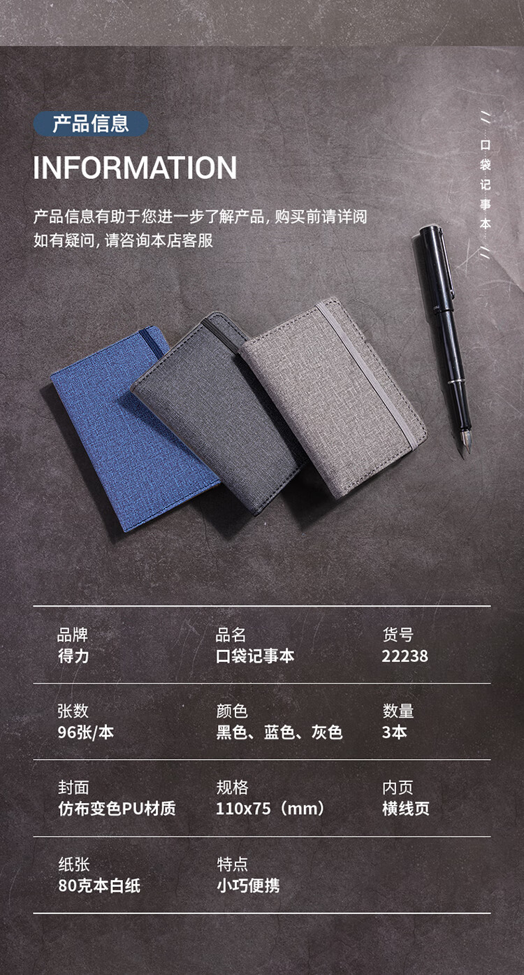 得力(deli)三本A7/96張便攜本筆記本子 小號迷你學生小本子布皮面本口袋本記事本便簽本手賬文具 混色22238 自營
