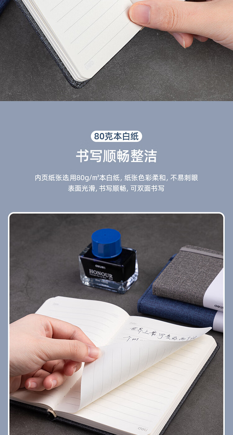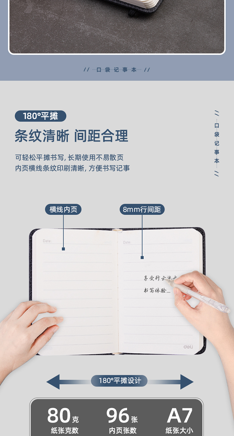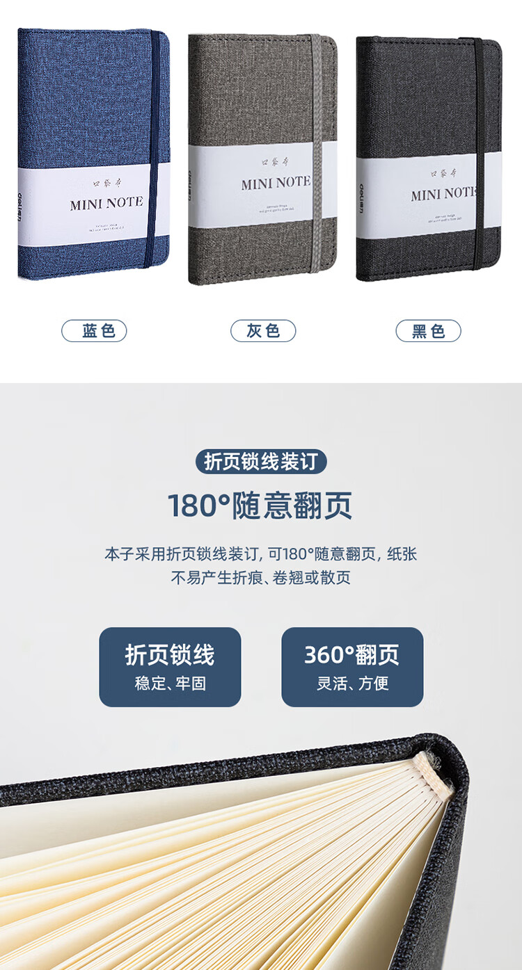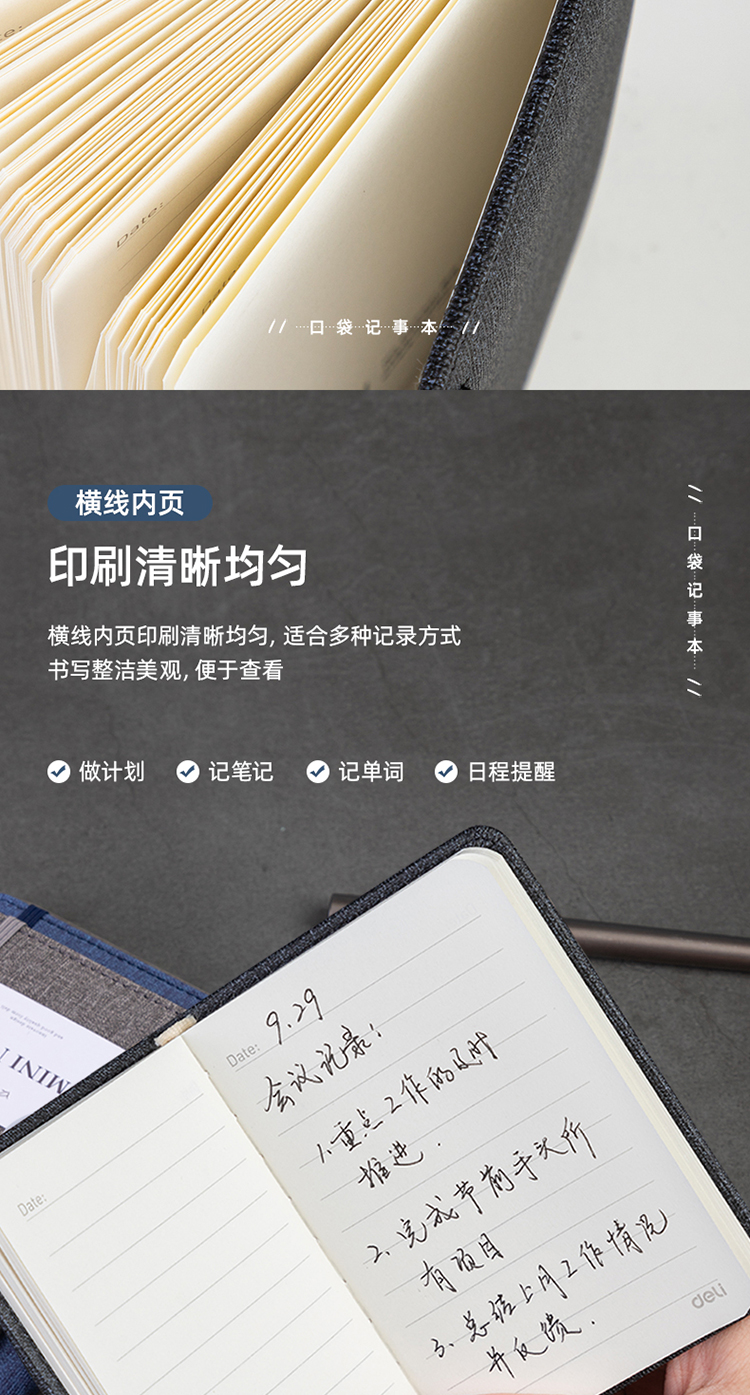 得力(deli)三本A7/96張便攜本筆記本子 小號迷你學生小本子布皮面本口袋本記事本便簽本手賬文具 混色22238 自營
