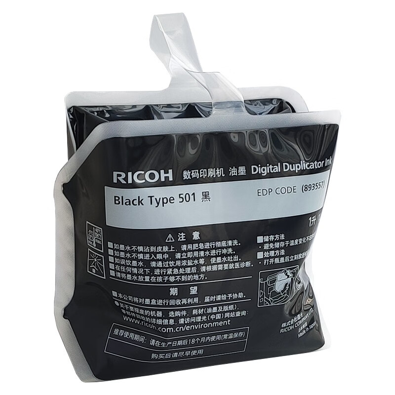 理光(Ricoh)501型 黑油墨(1000cc/袋*6袋)(適用于DD 5441C/DD 5451C/5440C/5450C) 自營