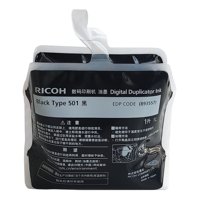 理光(Ricoh)501型 黑油墨(1000cc/袋*1袋)適用于DD 5441C/5451C/5440C/5450C 自營(yíng)