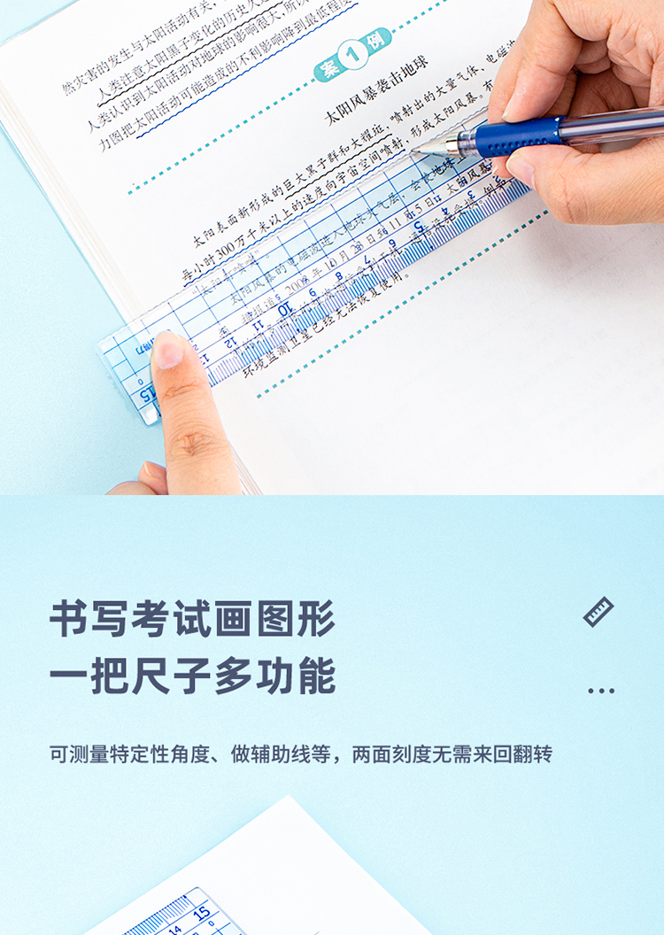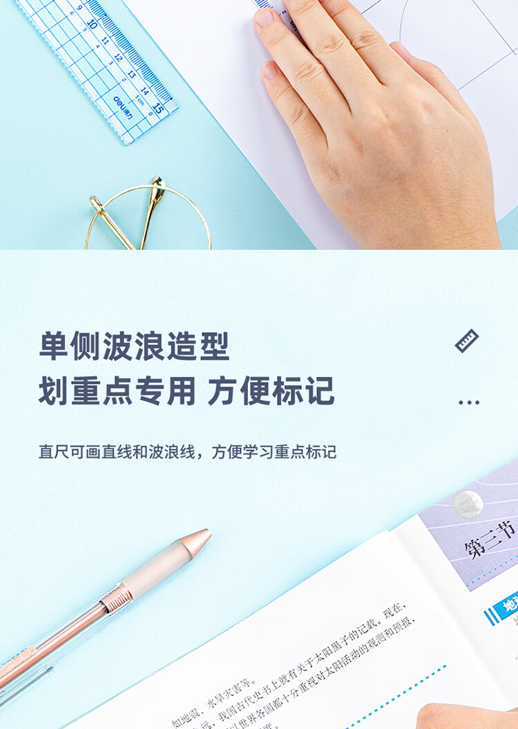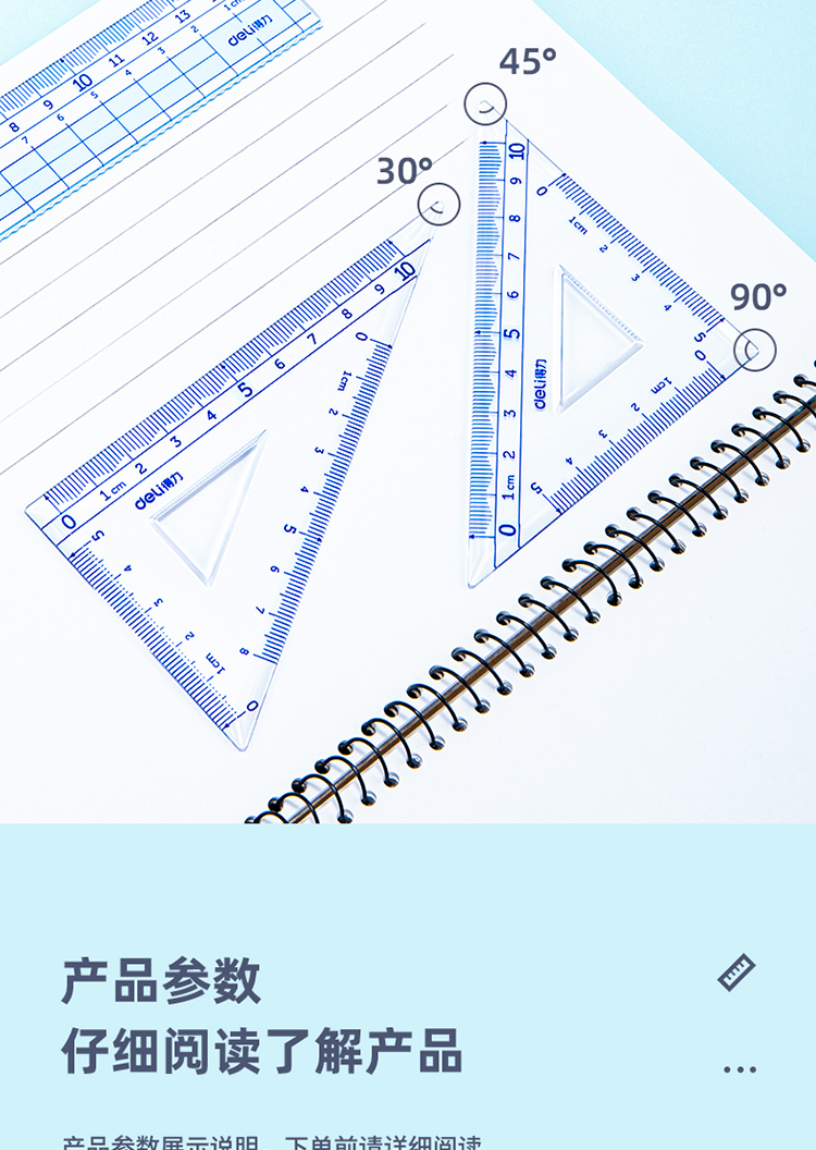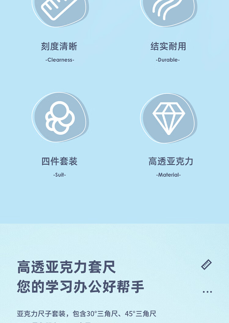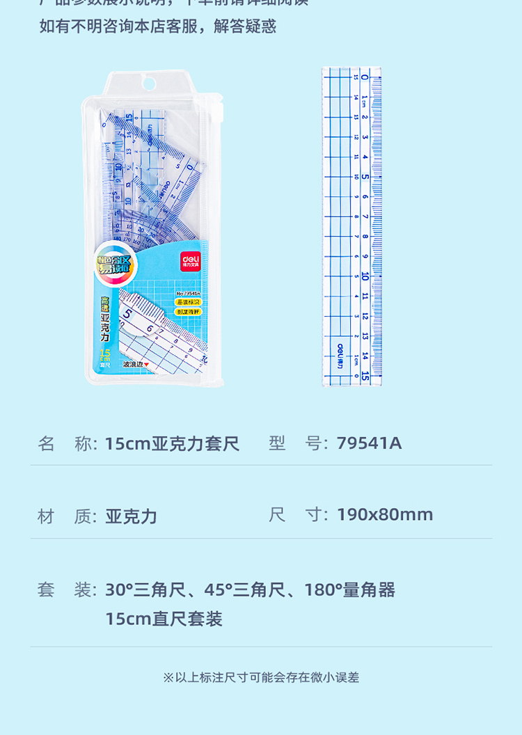 得力(deli)源源得力 王源款學(xué)生基礎(chǔ)款直尺三角尺量角器繪圖組合套尺4件套帶方格 藍(lán) 79541A 自營