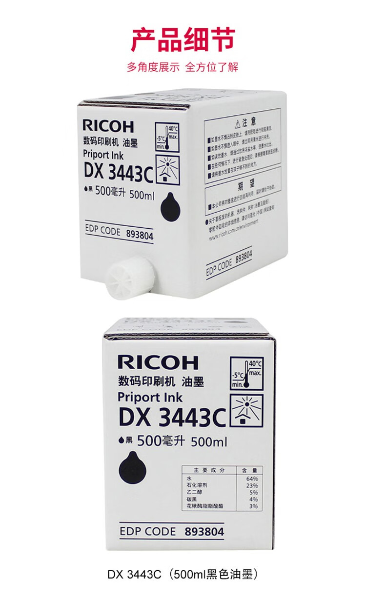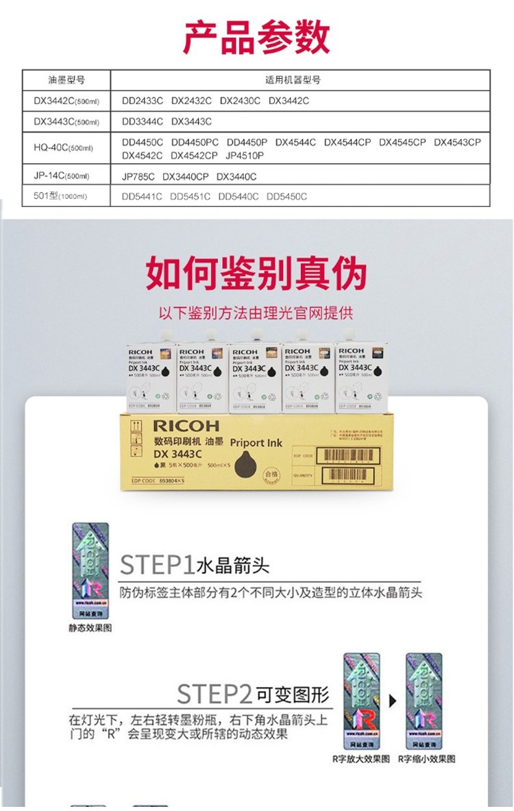 理光(Ricoh) 原裝油印機數(shù)碼印刷機速印機黑色油墨 DX3442C 一只 自營