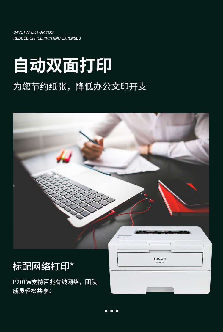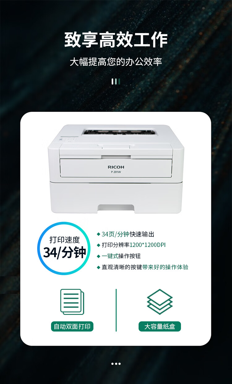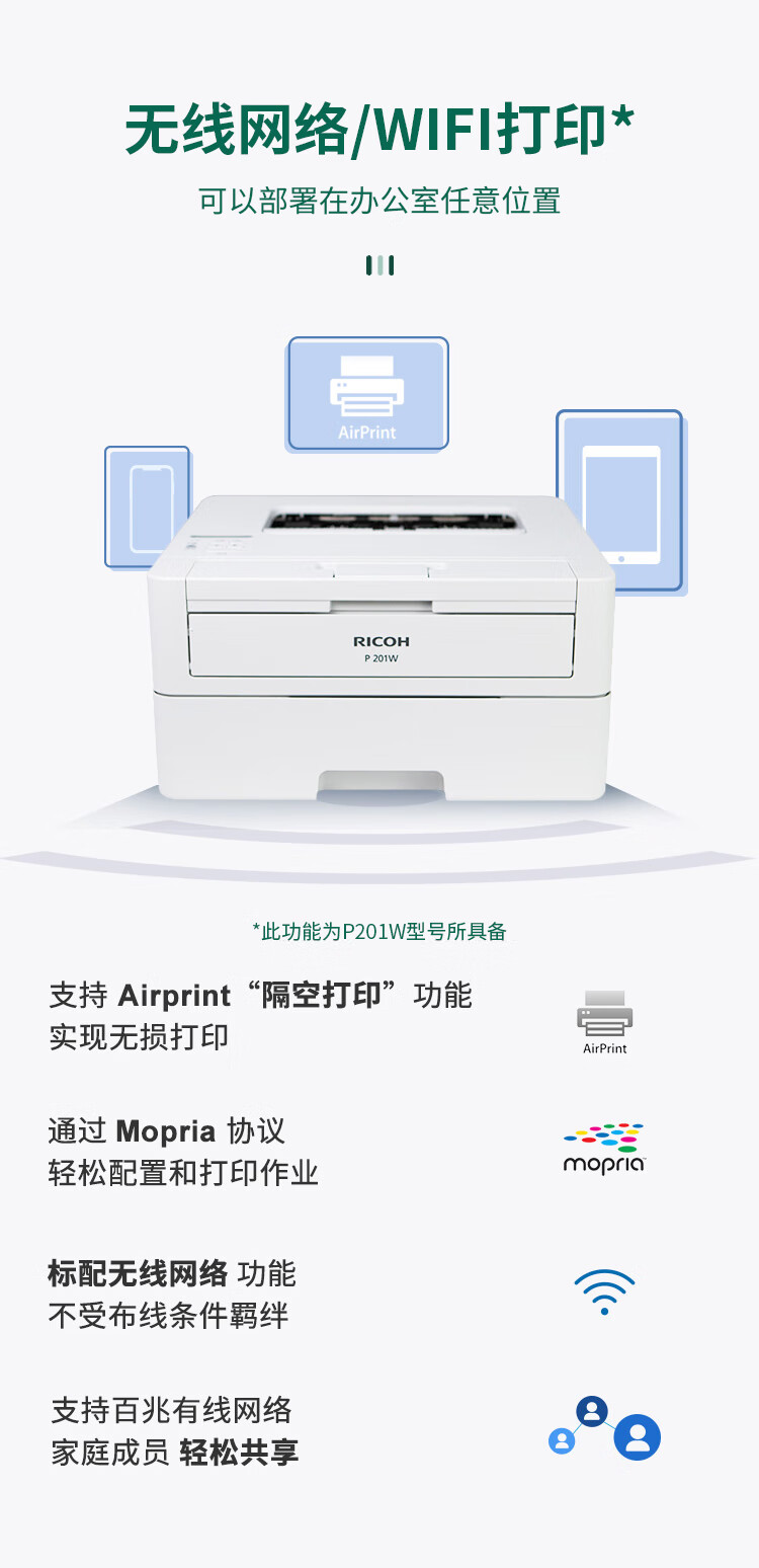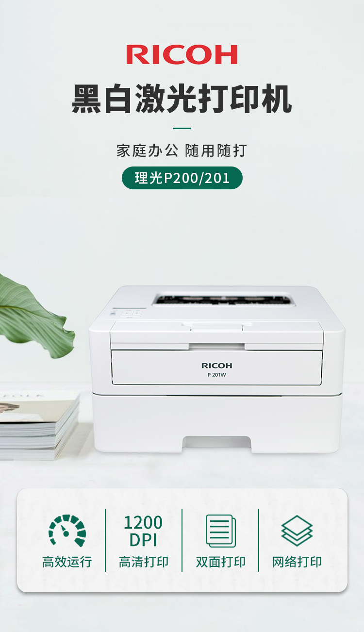 理光(Ricoh)P200 201W A4黑白激光家用辦公打印一體機(jī)自動(dòng)雙面無(wú)線網(wǎng)絡(luò)wifi打印 P201W(帶無(wú)線WIFI) 自營(yíng)