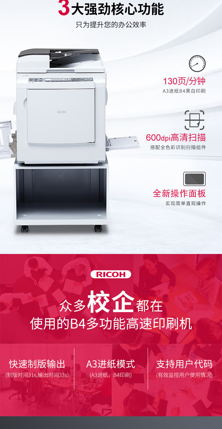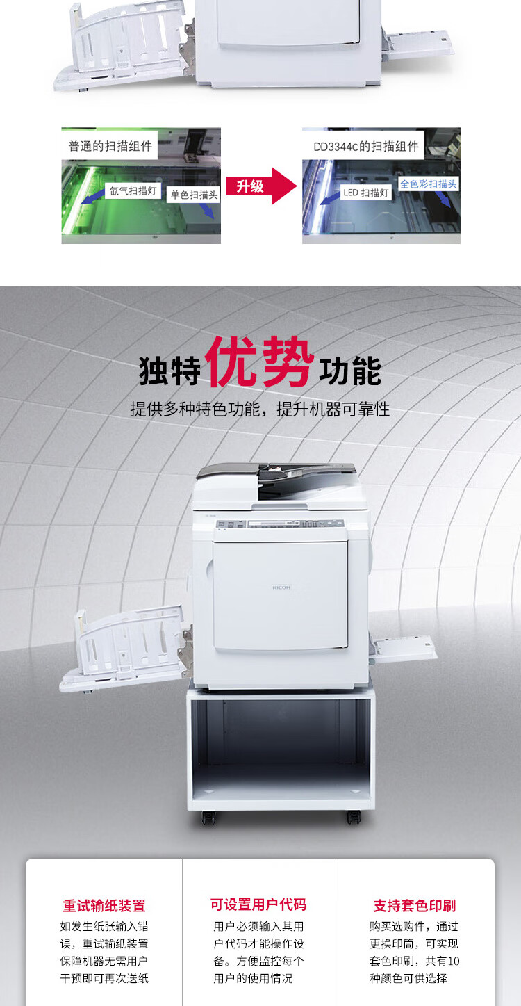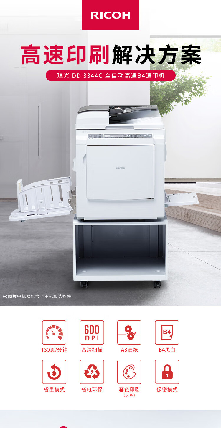 理光DD3344c 一體化速印機B4高速數(shù)碼印刷機油印機大量試卷打印學校機構(gòu)辦公商用 紅油墨2型(600cc/瓶) 自營