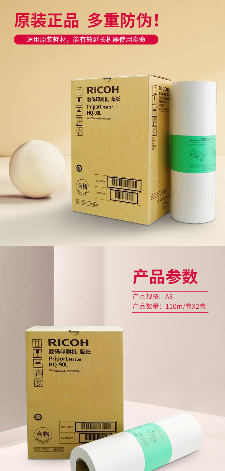 理光(Ricoh)HQ90L(110m/卷*2卷) 版紙 適用于HQ9000 自營