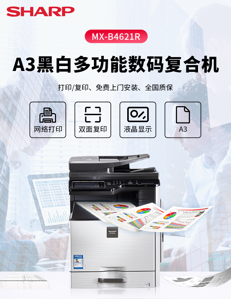 夏普(SHARP)MX-B4621R 復印機 多功能數(shù)碼復合機(含雙面輸稿器+單紙盒) 免費上門安裝售后 自營