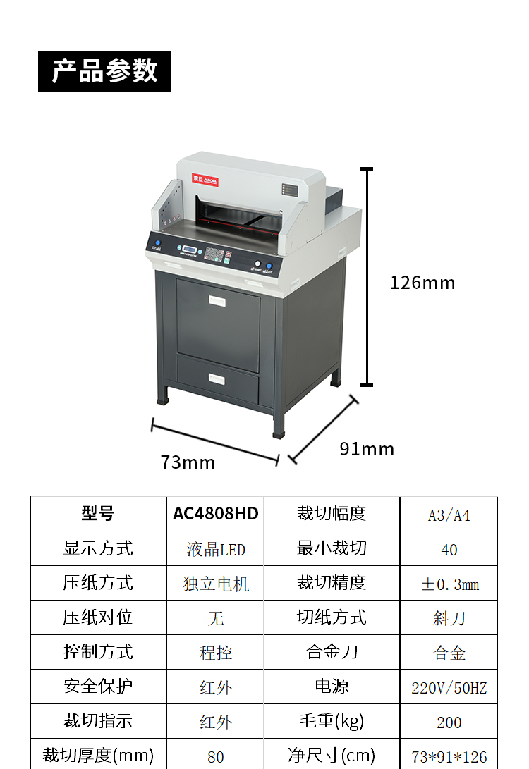 ¥38799.00震旦AURORA 80mm電動(dòng)程控切紙機(jī)A3幅面 標(biāo)書(shū)文件裁紙機(jī)書(shū)籍檔案修邊切紙刀 AC4808HD