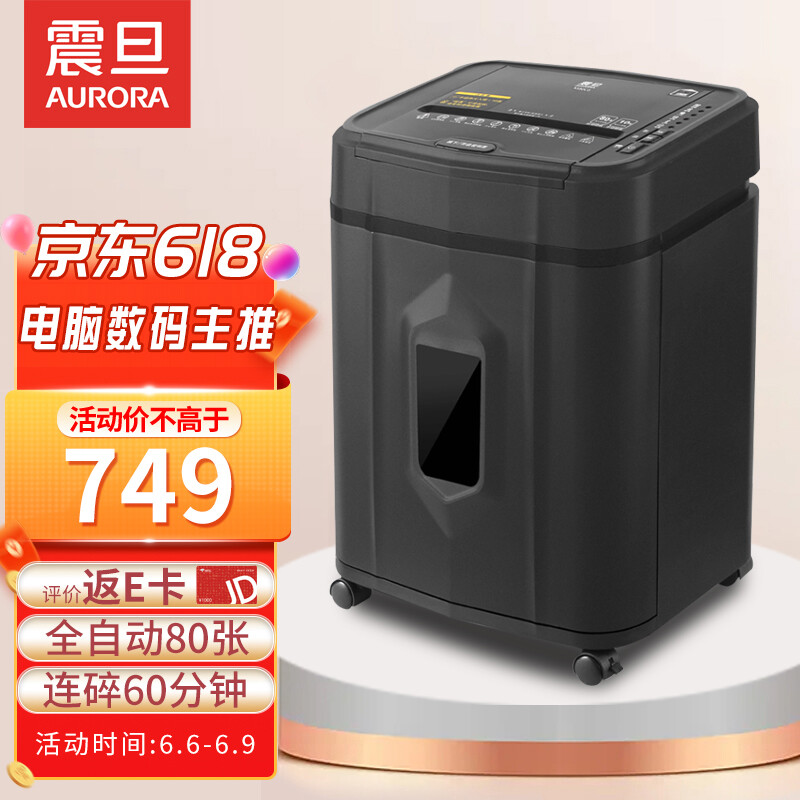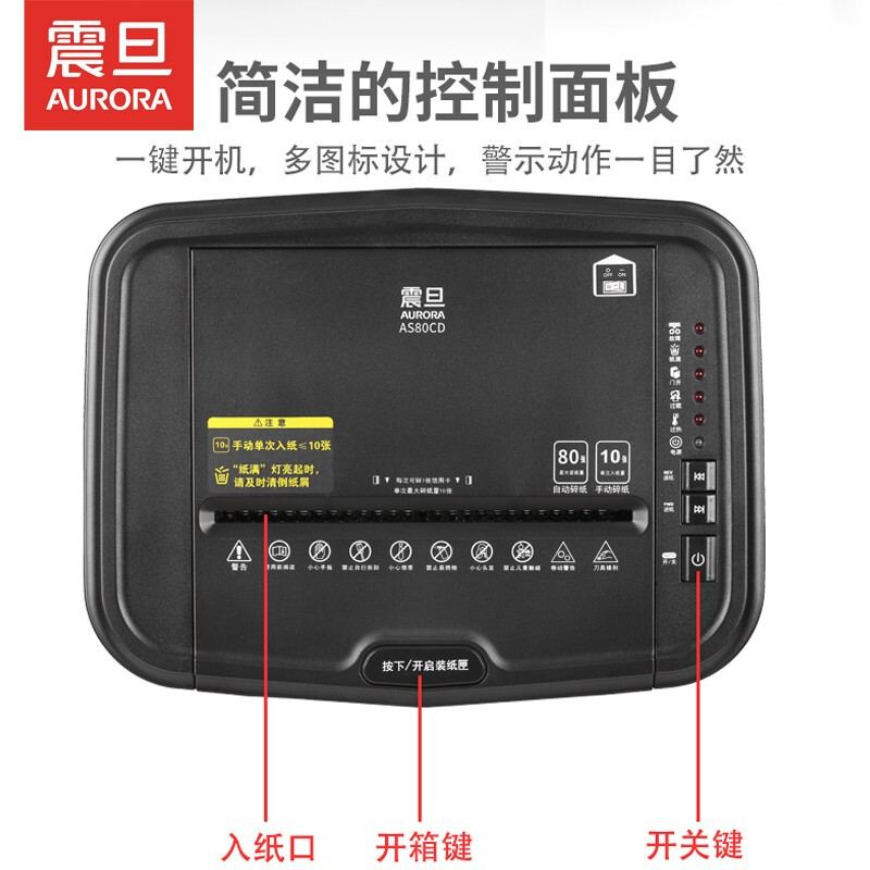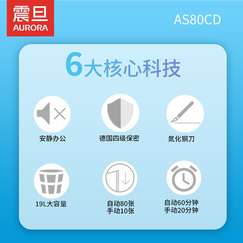 震旦AURORA 4級(jí)保密辦公商用全自動(dòng)碎紙機(jī)(自動(dòng)80張 持續(xù)60分鐘 19L 可碎卡、光盤) AS80CD 自營