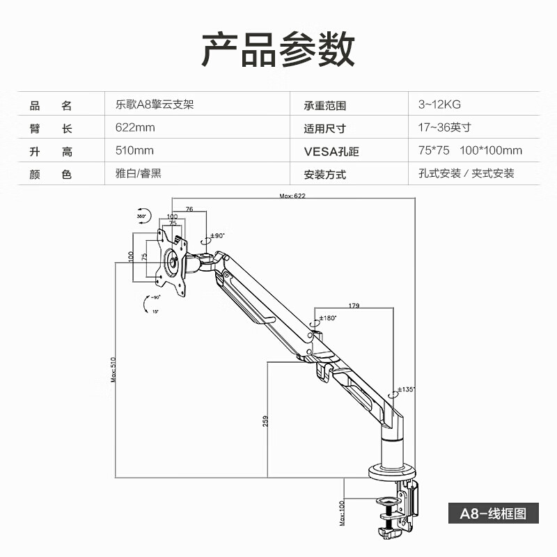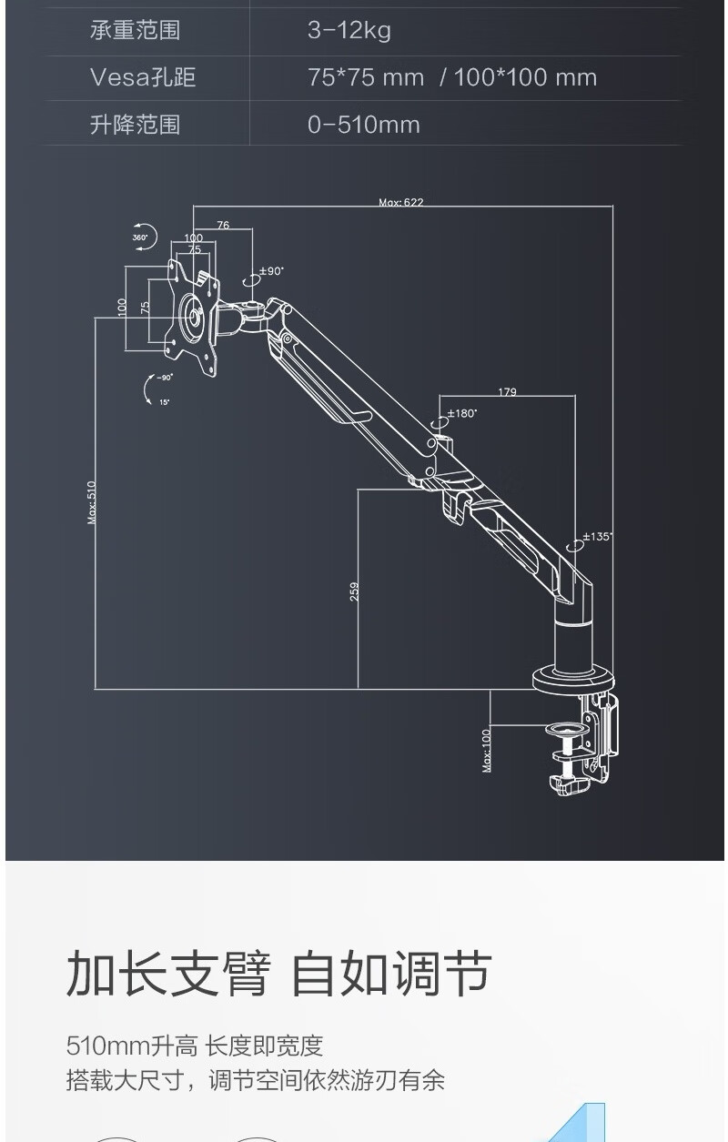 ¥319.00樂歌液晶電腦顯示器支架 桌面底座旋轉(zhuǎn)升降伸縮架 高清顯示器支架臂D5