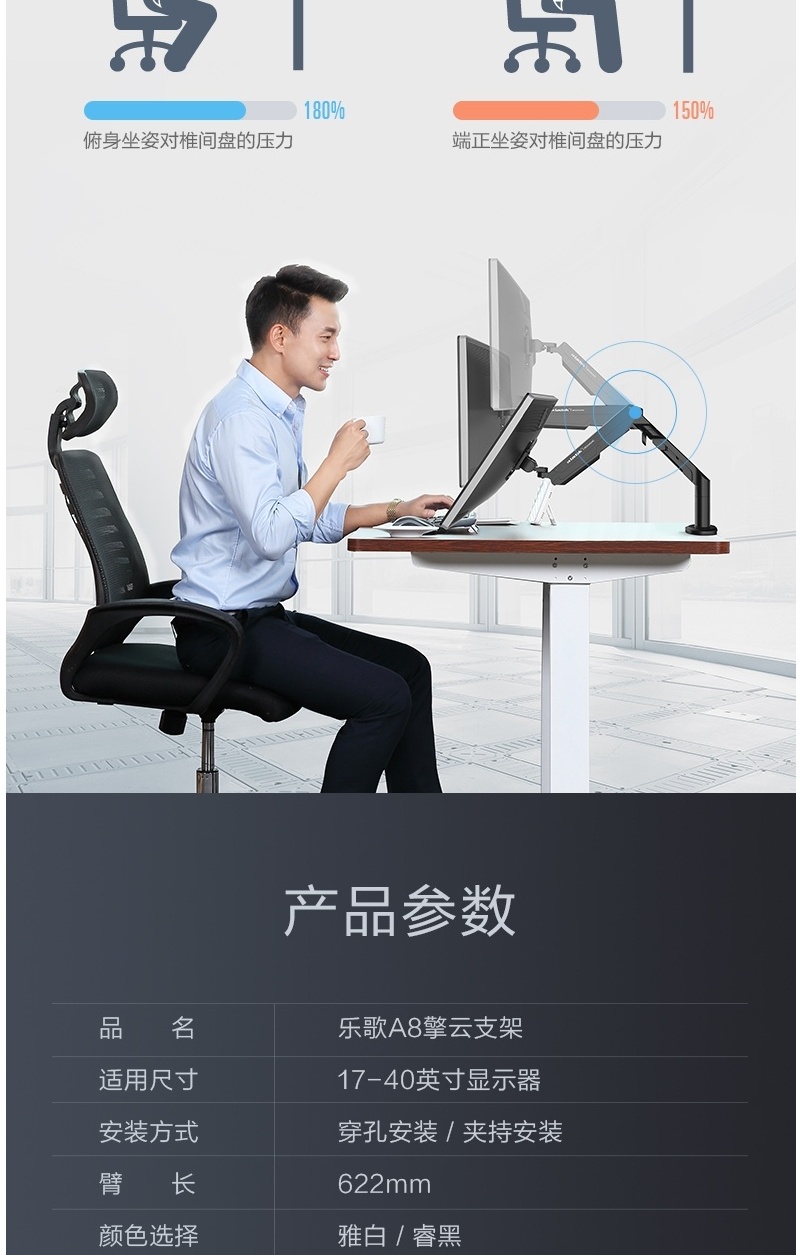樂歌顯示器支架 雙屏拼接顯示器設(shè)計(jì)電腦架 桌面底座旋轉(zhuǎn)升降雙屏支架 DLB502-D