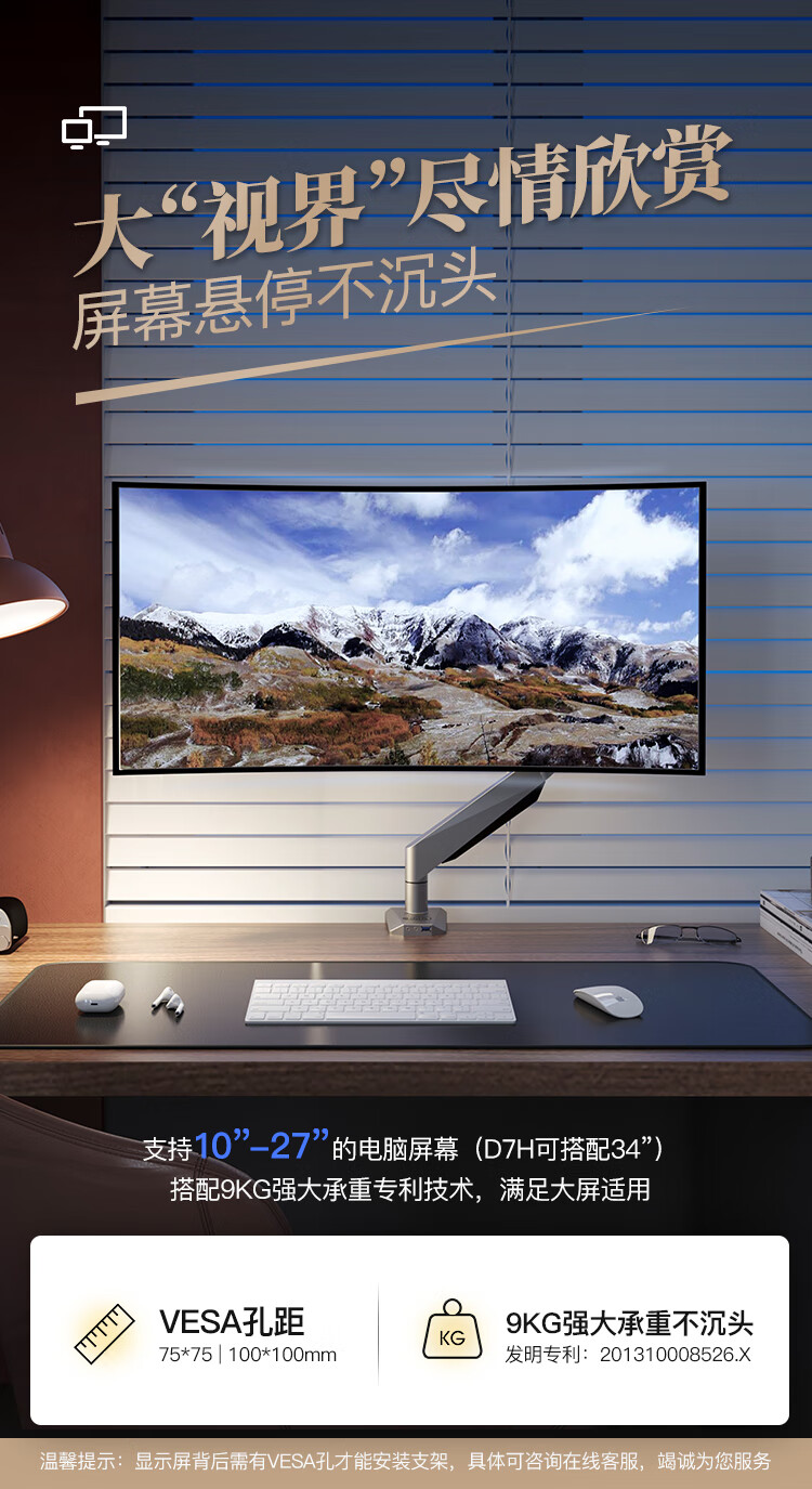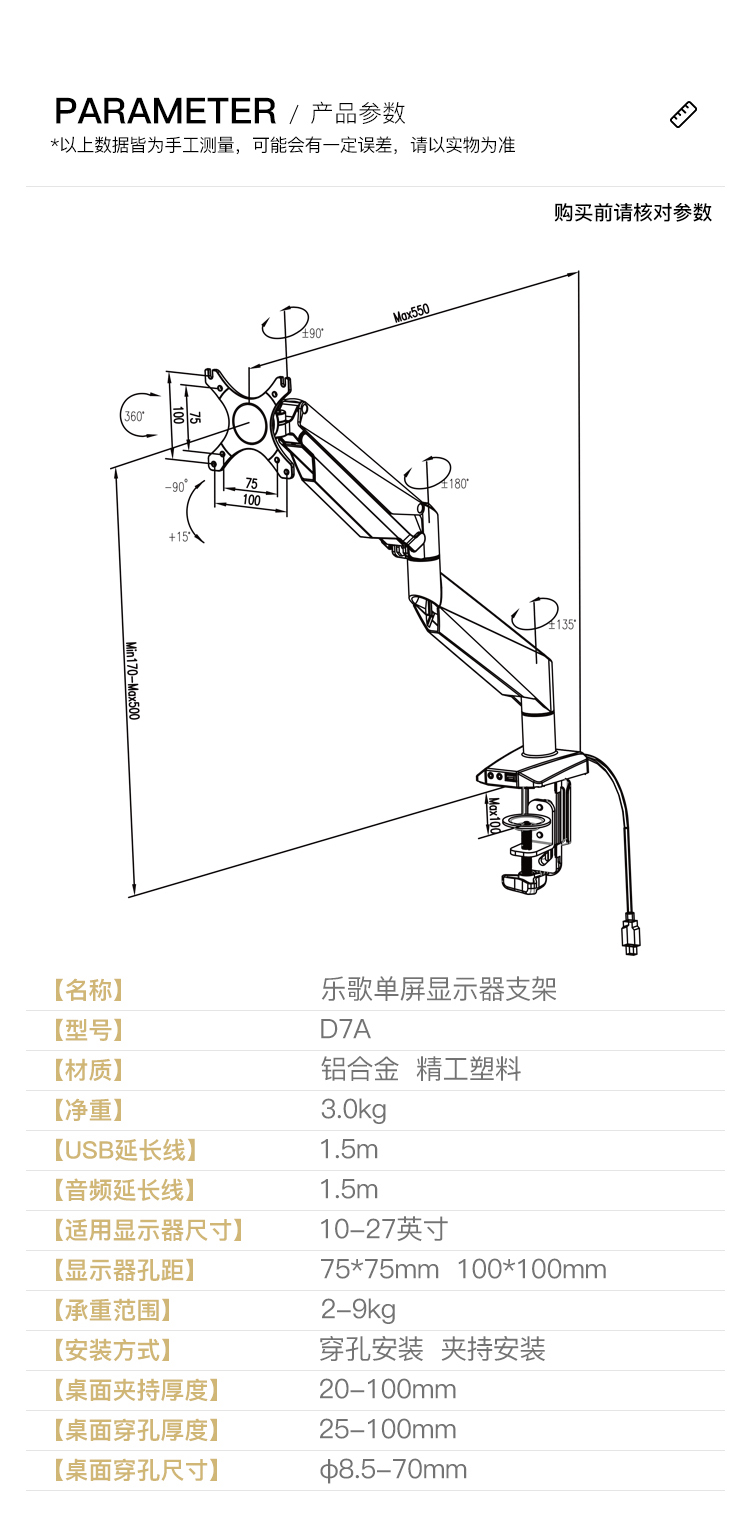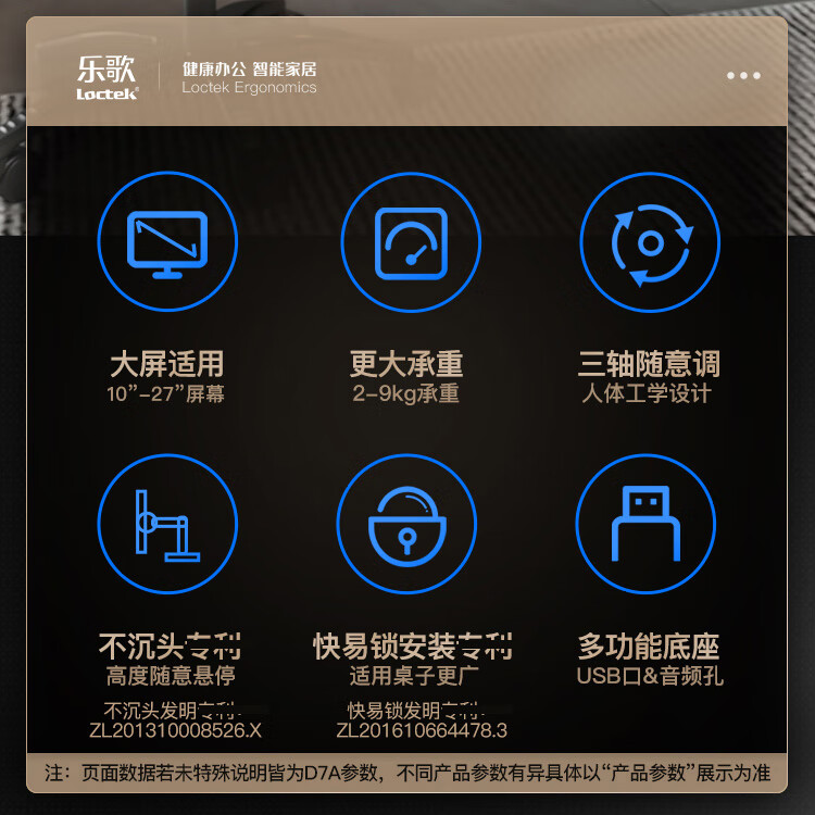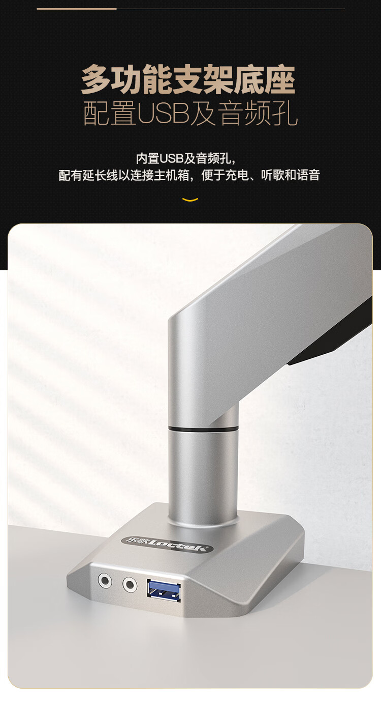 ¥450.00樂歌(Loctek) 電腦顯示器支架萬向桌面伸縮旋轉(zhuǎn)電腦架顯示屏支架增高架雙屏 帶USB/音頻接口 D7D