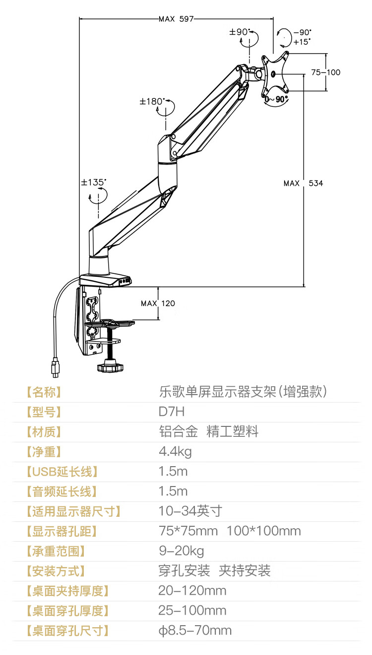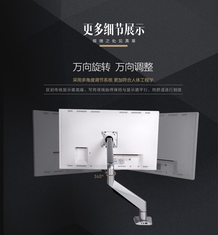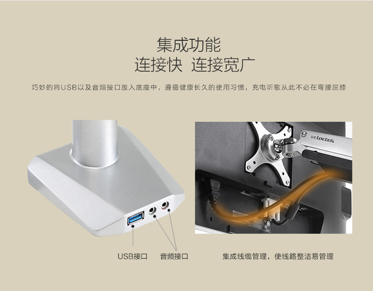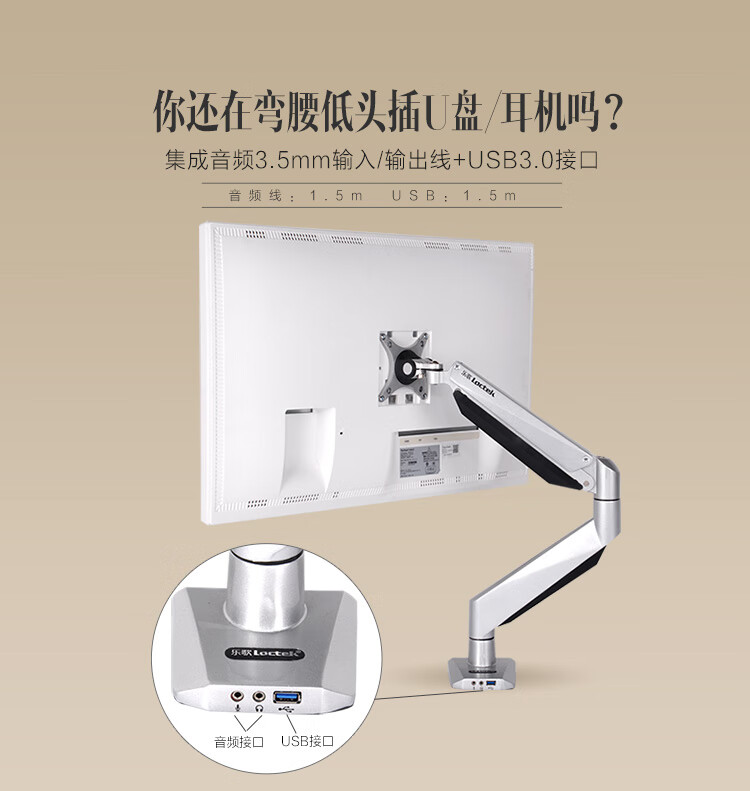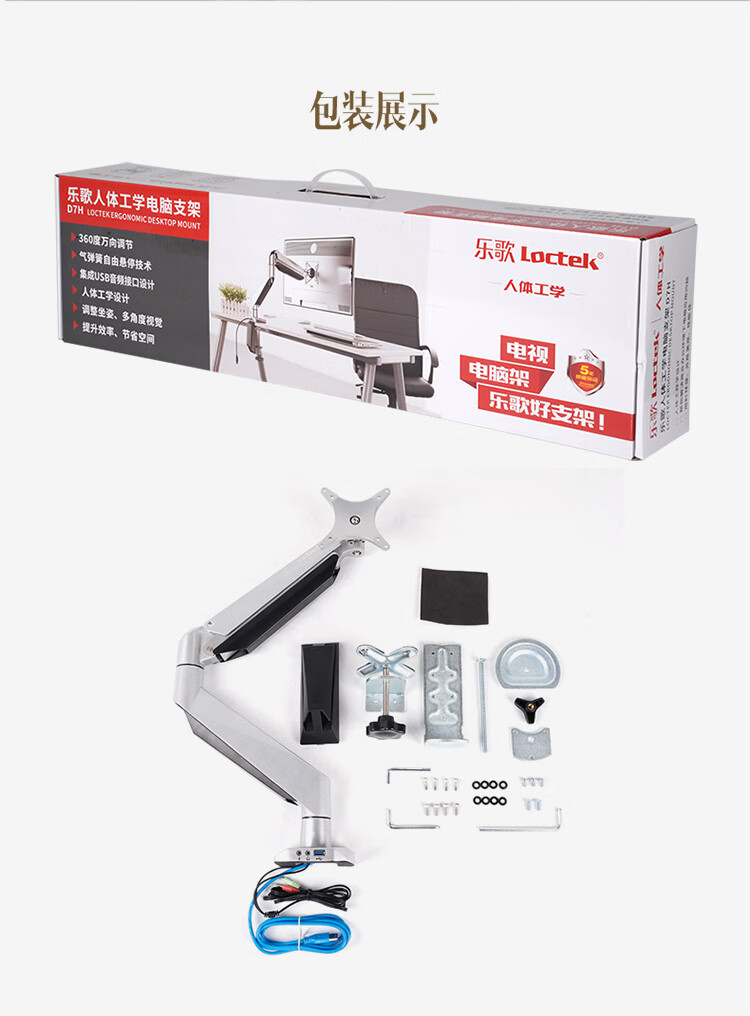 ¥450.00樂歌(Loctek) 電腦顯示器支架萬向桌面伸縮旋轉(zhuǎn)電腦架顯示屏支架增高架雙屏 帶USB/音頻接口 D7D