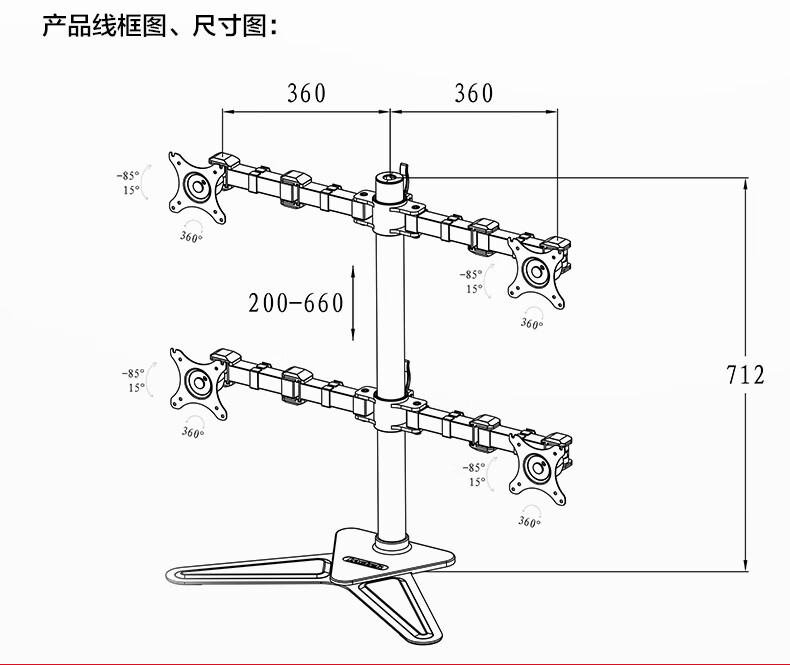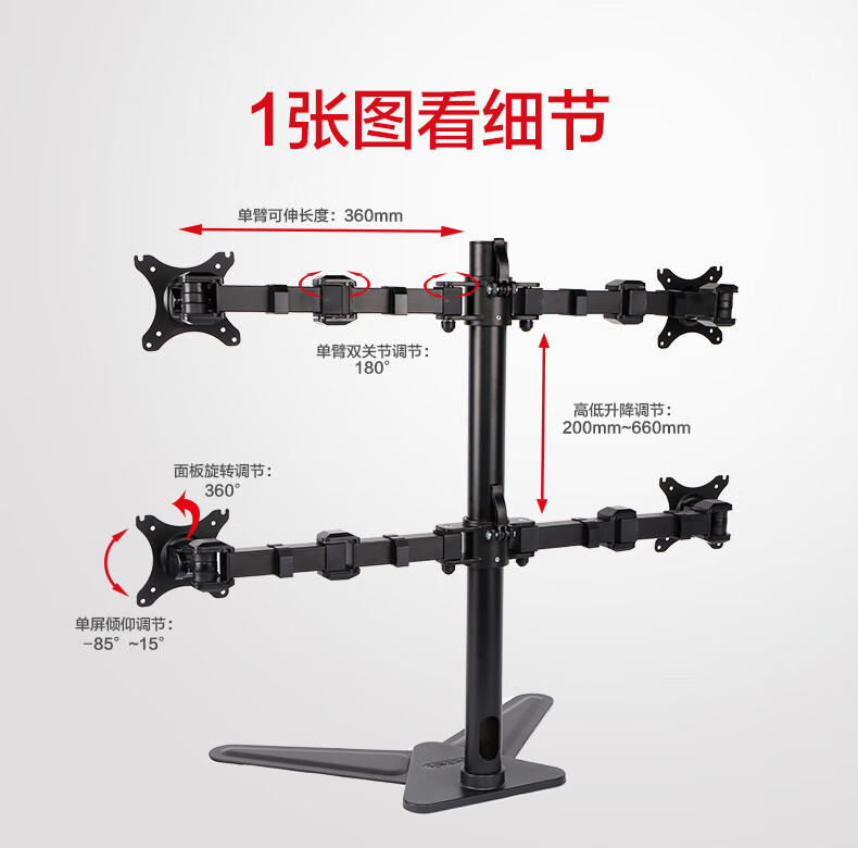 ¥210.00樂(lè)歌(Loctek)顯示器支架 四屏液晶電腦桌面拼接旋轉(zhuǎn)升降顯示器支架臂 10-30英寸 D2Q