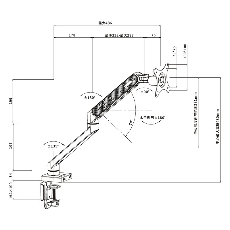 ¥210.00樂歌(Loctek)顯示器支架 四屏液晶電腦桌面拼接旋轉(zhuǎn)升降顯示器支架臂 10-30英寸 D2Q