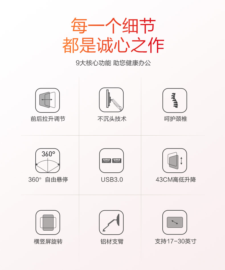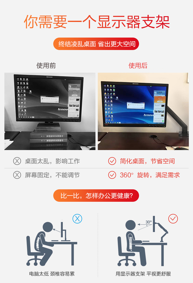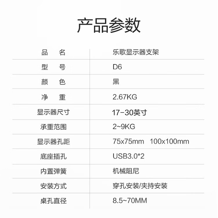 ¥338.00樂歌顯示器支架 電腦顯示器支架臂桌面旋轉(zhuǎn)升降顯示器增高架 電腦升降架17-30英寸 D6