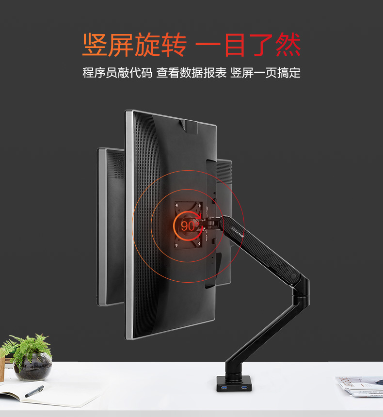¥450.00樂歌(Loctek) 電腦顯示器支架萬向桌面伸縮旋轉(zhuǎn)電腦架顯示屏支架增高架雙屏 帶USB/音頻接口 D7D
