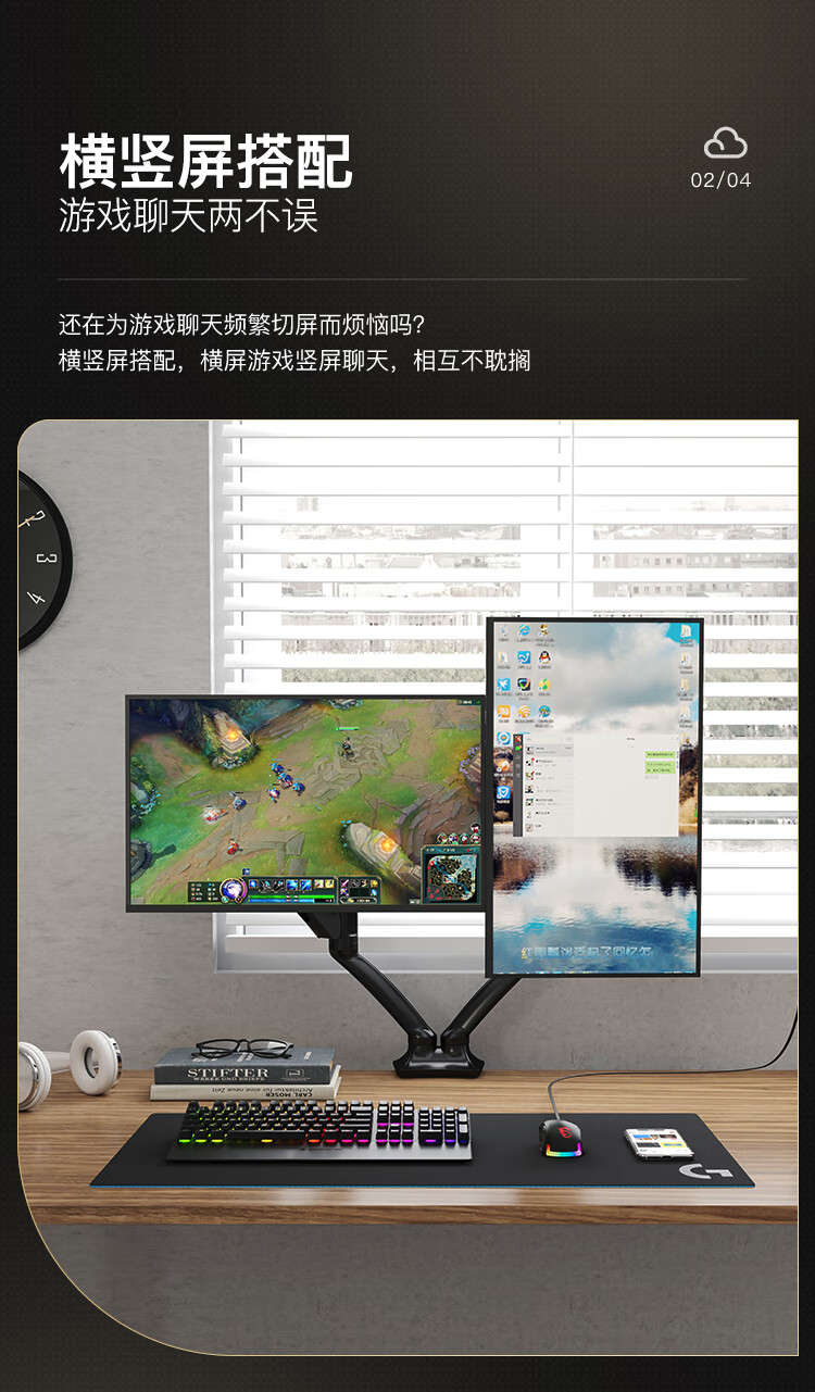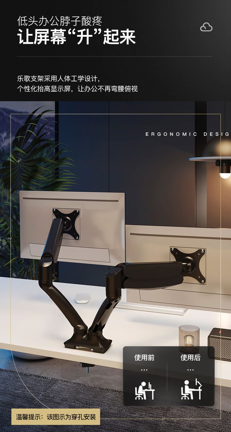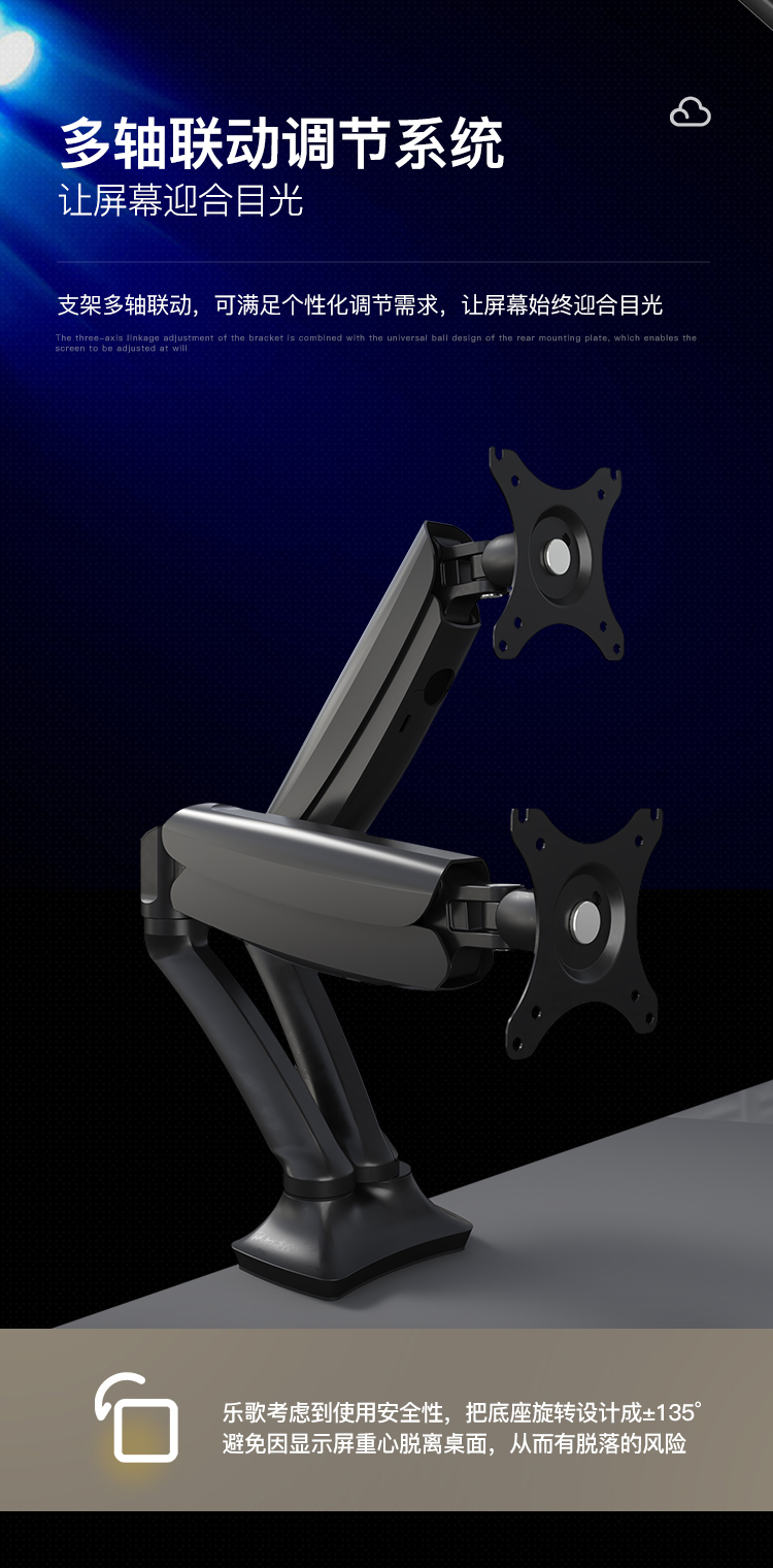 樂(lè)歌顯示器支架 雙屏拼接顯示器設(shè)計(jì)電腦架 桌面底座旋轉(zhuǎn)升降雙屏支架 DLB502-D