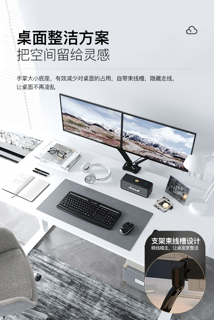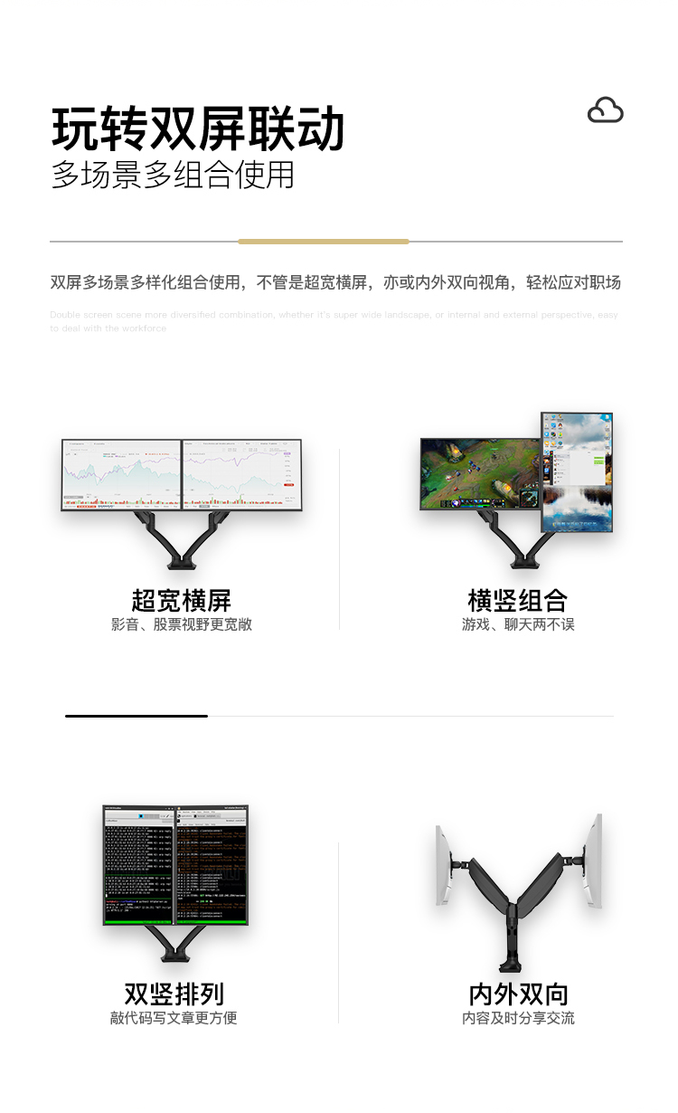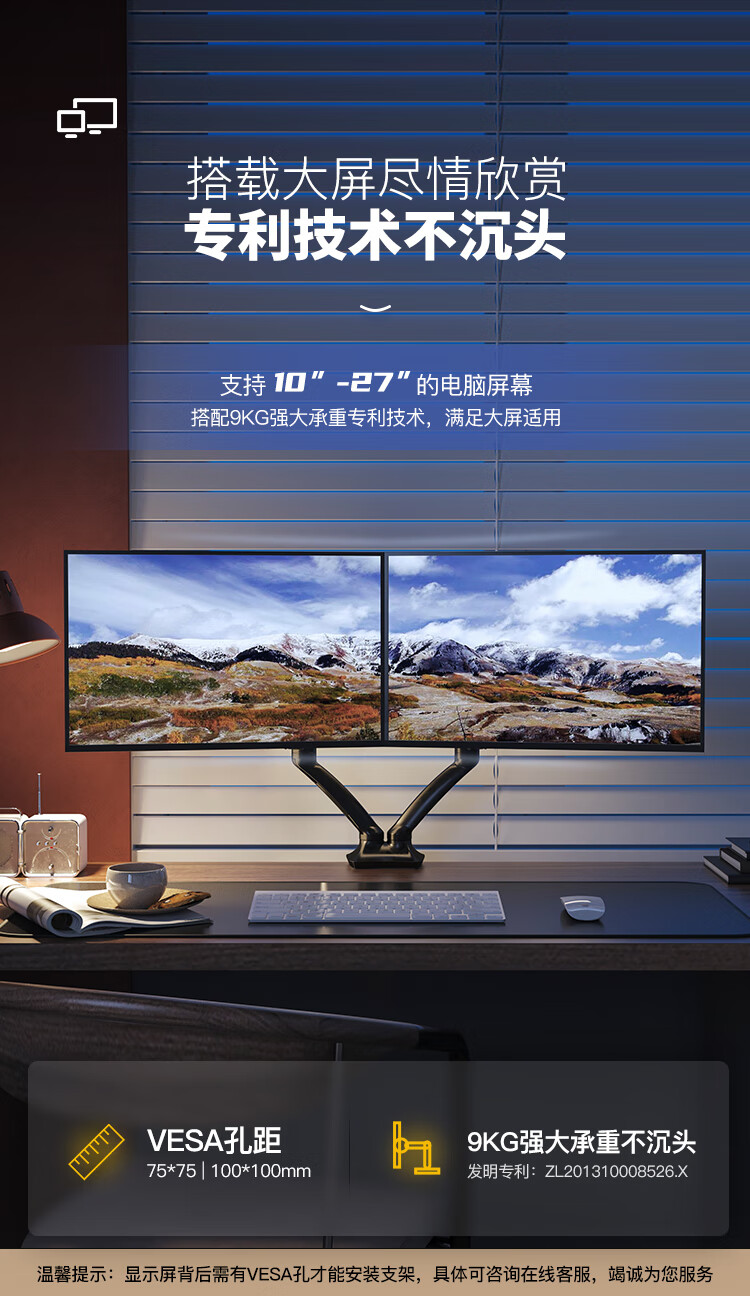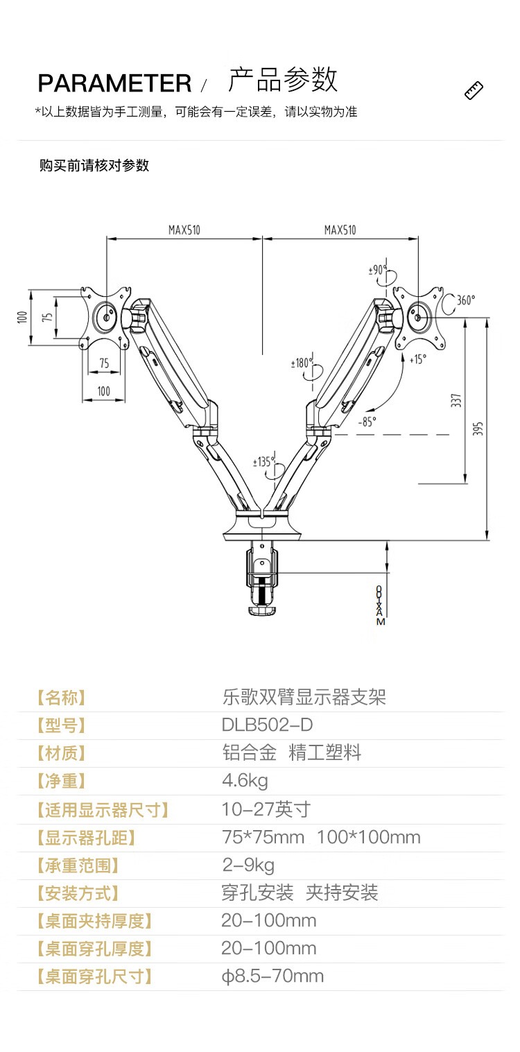 樂(lè)歌顯示器支架 雙屏拼接顯示器設(shè)計(jì)電腦架 桌面底座旋轉(zhuǎn)升降雙屏支架 DLB502-D