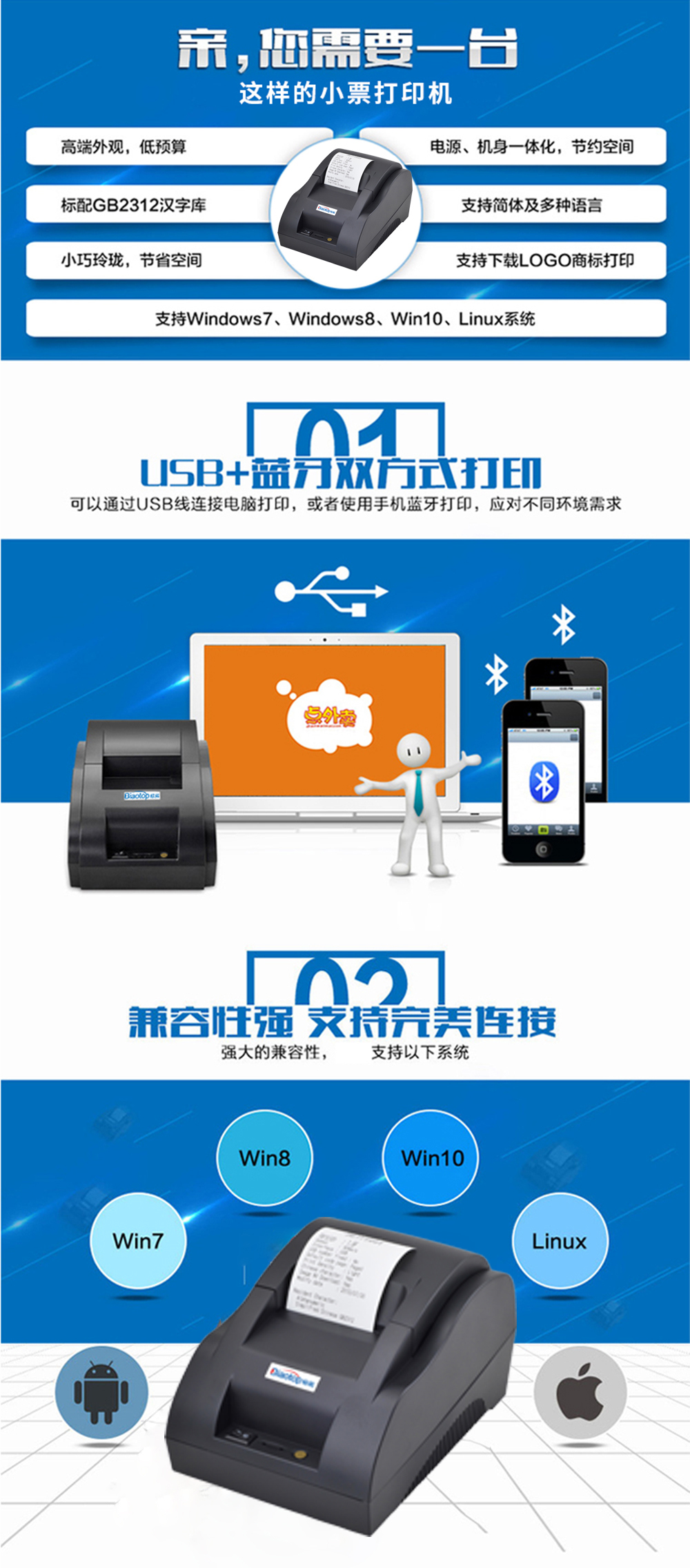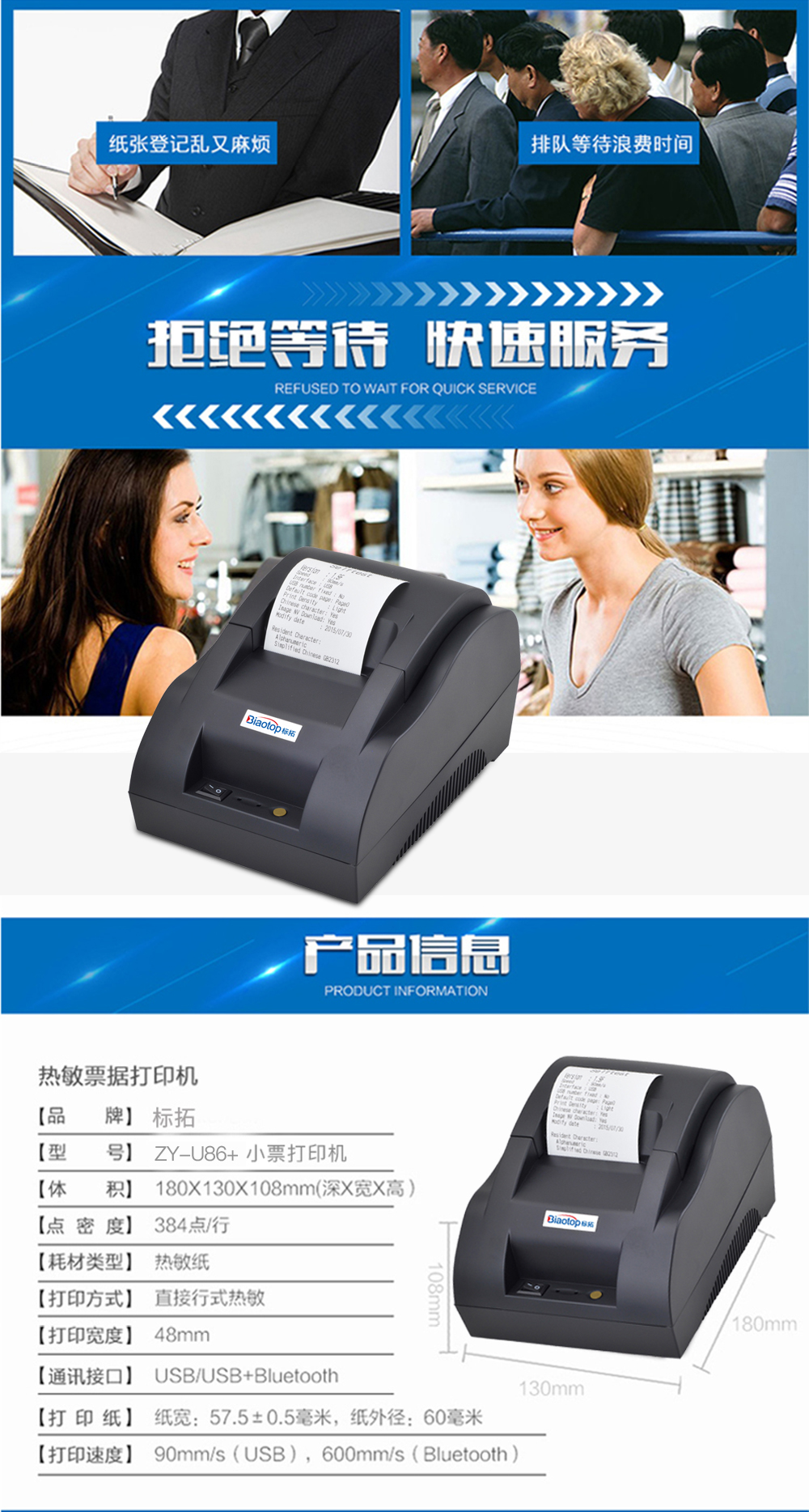 ¥349.00標(biāo)拓(Biaotop)ZY-U86+小票打印機適用銀行、電信、醫(yī)院、餐飲、超市、體彩小票打印 USB+藍(lán)牙版