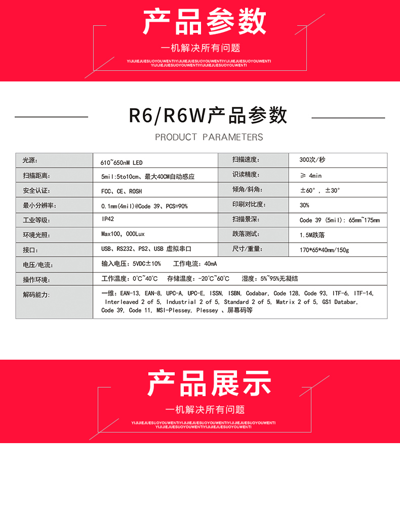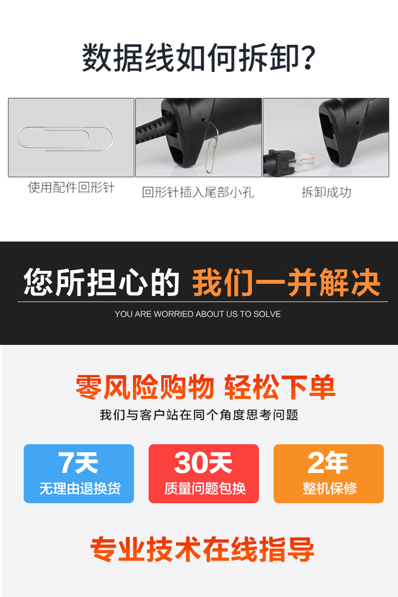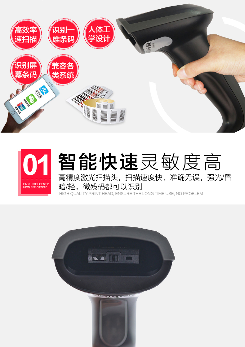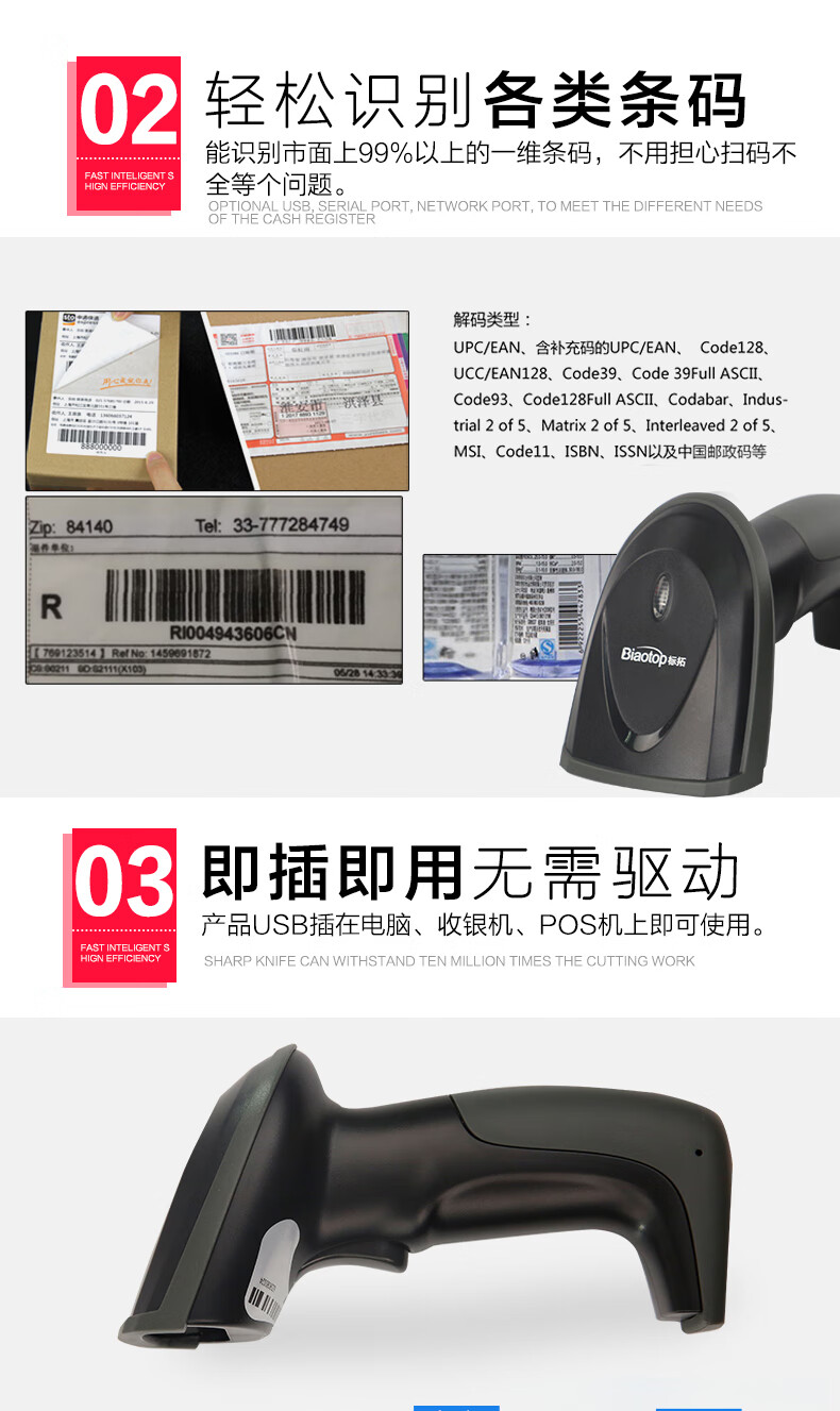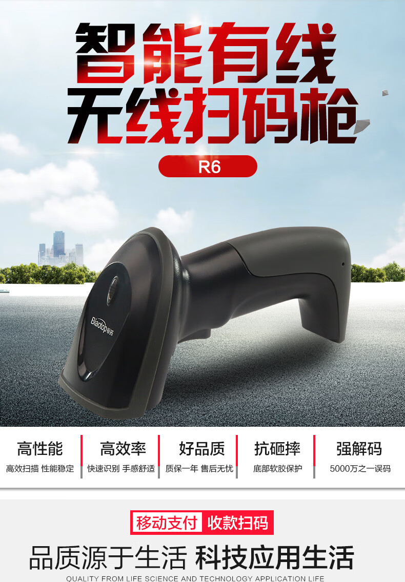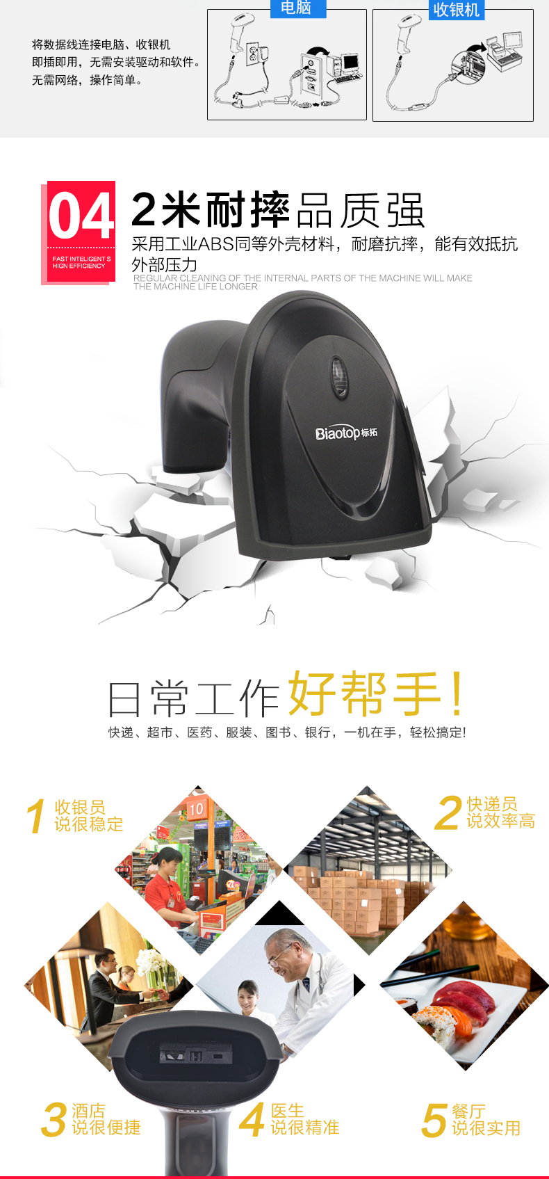 標(biāo)拓(Biaotop)R6有線屏幕手機(jī)收銀掃描槍掃碼槍 一維碼掃描器紅光條碼槍 自營