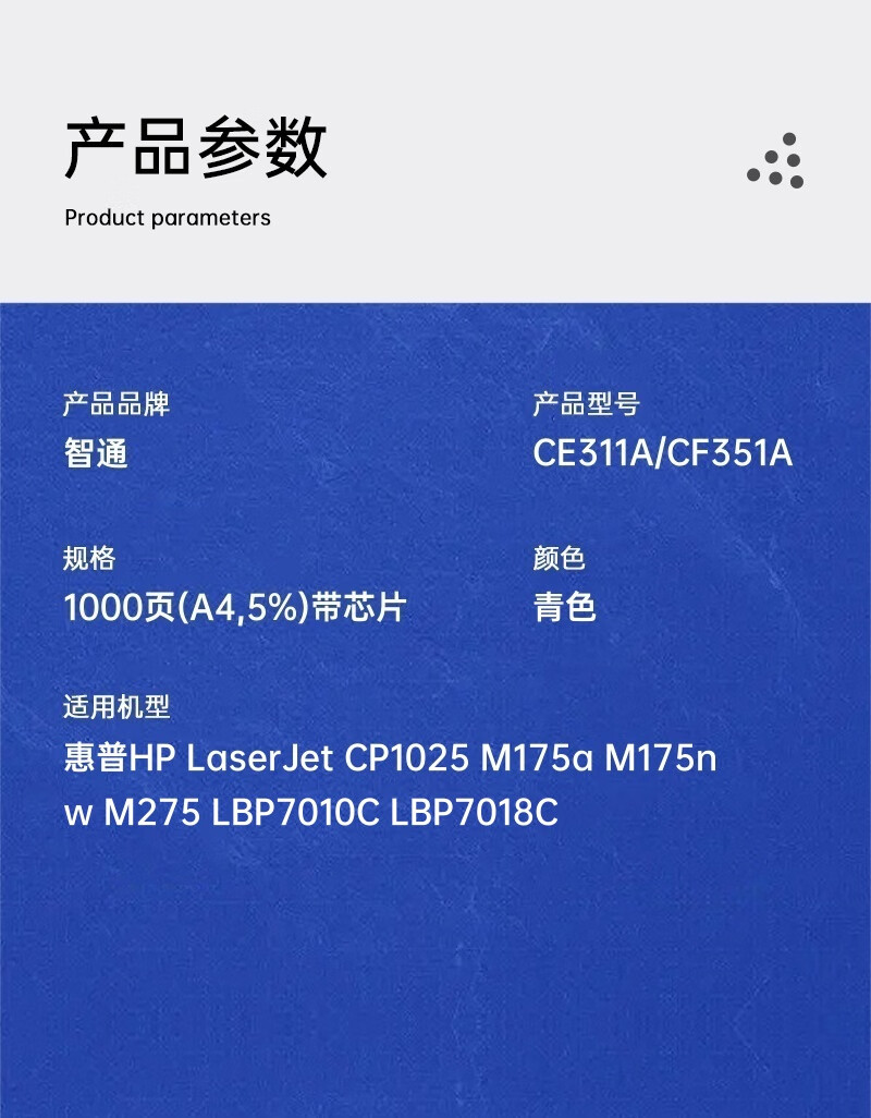 ¥140.00智通 CE312A/CF352A 粉盒 帶芯片 黃色 1000頁(A4,5%)適用惠普HP LaserJet CP1025 M175a M175nw M275
