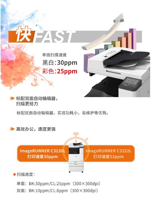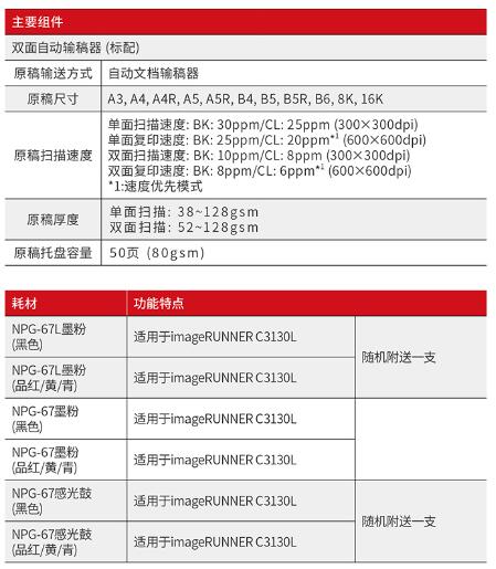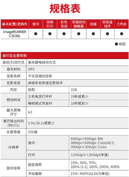 佳能(Canon)大型打印機(jī)iRC3130L 商用辦公a3a4彩色復(fù)合復(fù)印機(jī)(雙面打印/掃描)含雙面自動(dòng)輸稿器工作臺(tái) 自營(yíng)