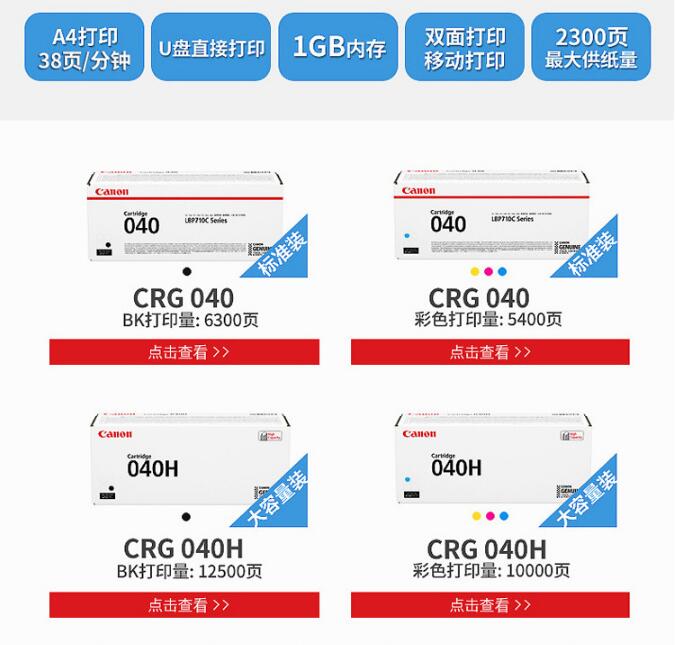 佳能(Canon)LBP712Cx A4幅面彩色激光單功能打印機(自動雙面打印/有線網(wǎng)絡打印 商用辦公) 自營