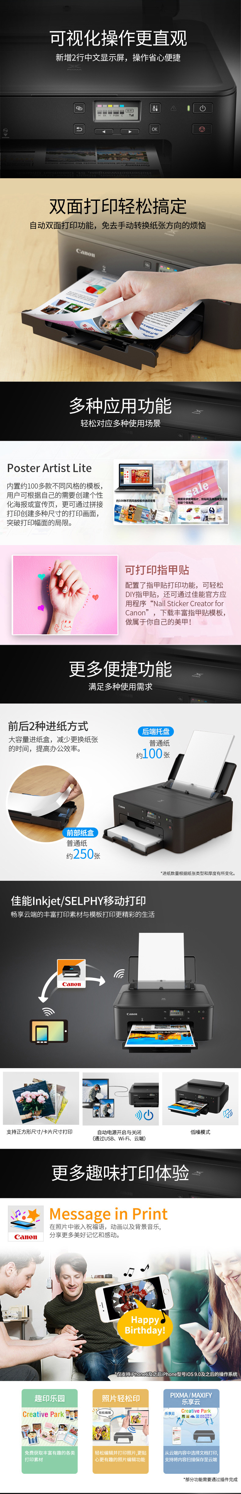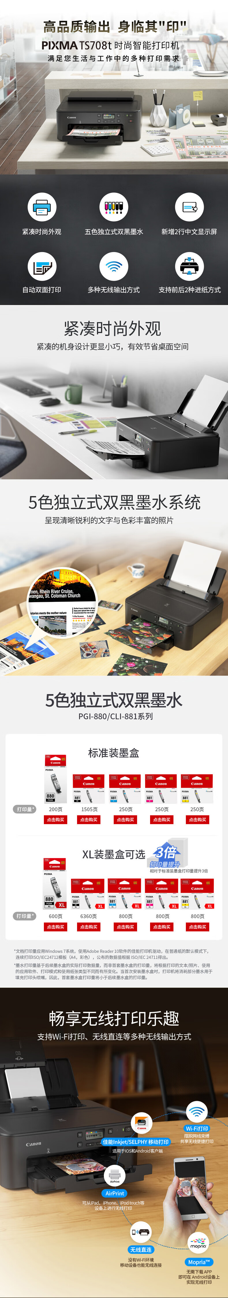 佳能(Canon) TS708t 騰彩PIXMA 時(shí)尚智能打印機(jī)(無(wú)線/自動(dòng)雙面 家用/商用) 自營(yíng)