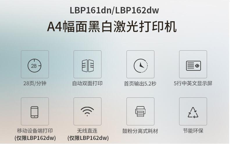 ¥6690.00佳能LBP161dn/162dw黑白激光網(wǎng)絡(luò)家用商用無線雙面打印機替代151dw LBP162dw官方標配無線版