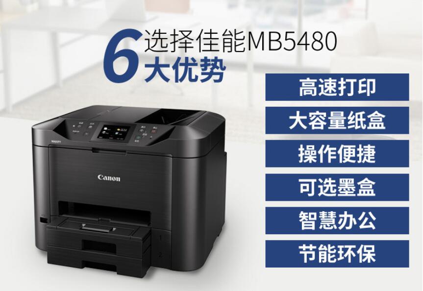 ¥1400.00佳能(Canon) MB5480 高速商用無線噴墨打印機一體機 打印復(fù)印掃描傳真機一體機 官方標配