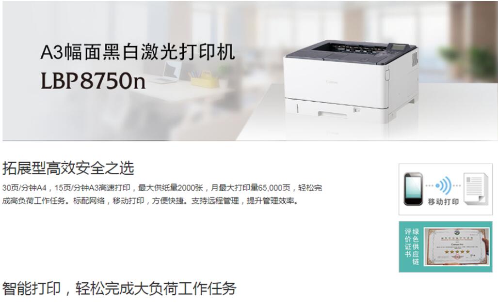 ¥775.00佳能(Canon) LBP8750n打印機(jī) A3A4黑白網(wǎng)絡(luò)激光自定義打印 官方標(biāo)配(主機(jī)+原裝耗材+隨機(jī)配件)