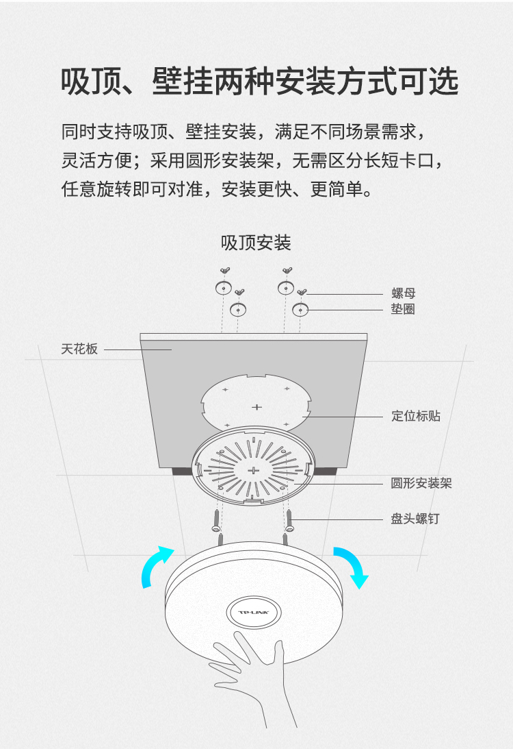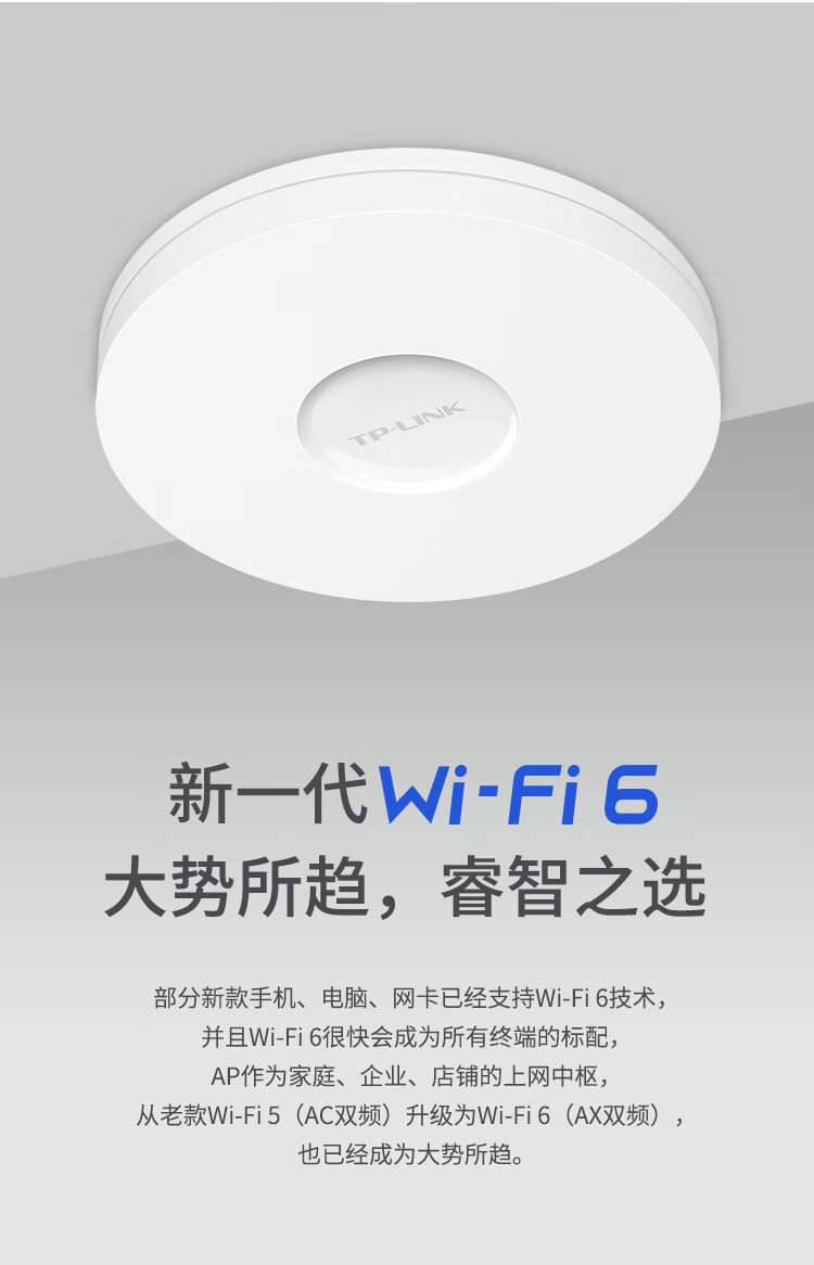 TP-LINK【W(wǎng)IFI6 易展吸頂AP】AX1800雙頻千兆 家用商用大功率5G覆蓋 TL-XAP1807GC-PoE/DC易展版 自營