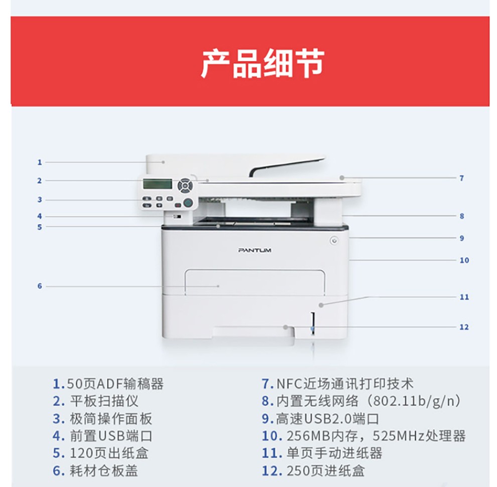 ¥1939.00奔圖(PANTUM) M7170DW無線自動雙面激光打印機復印網絡多功能一體機手機WiFi遠程辦公 官方標配:原裝新機+原裝隨機硒鼓/粉盒