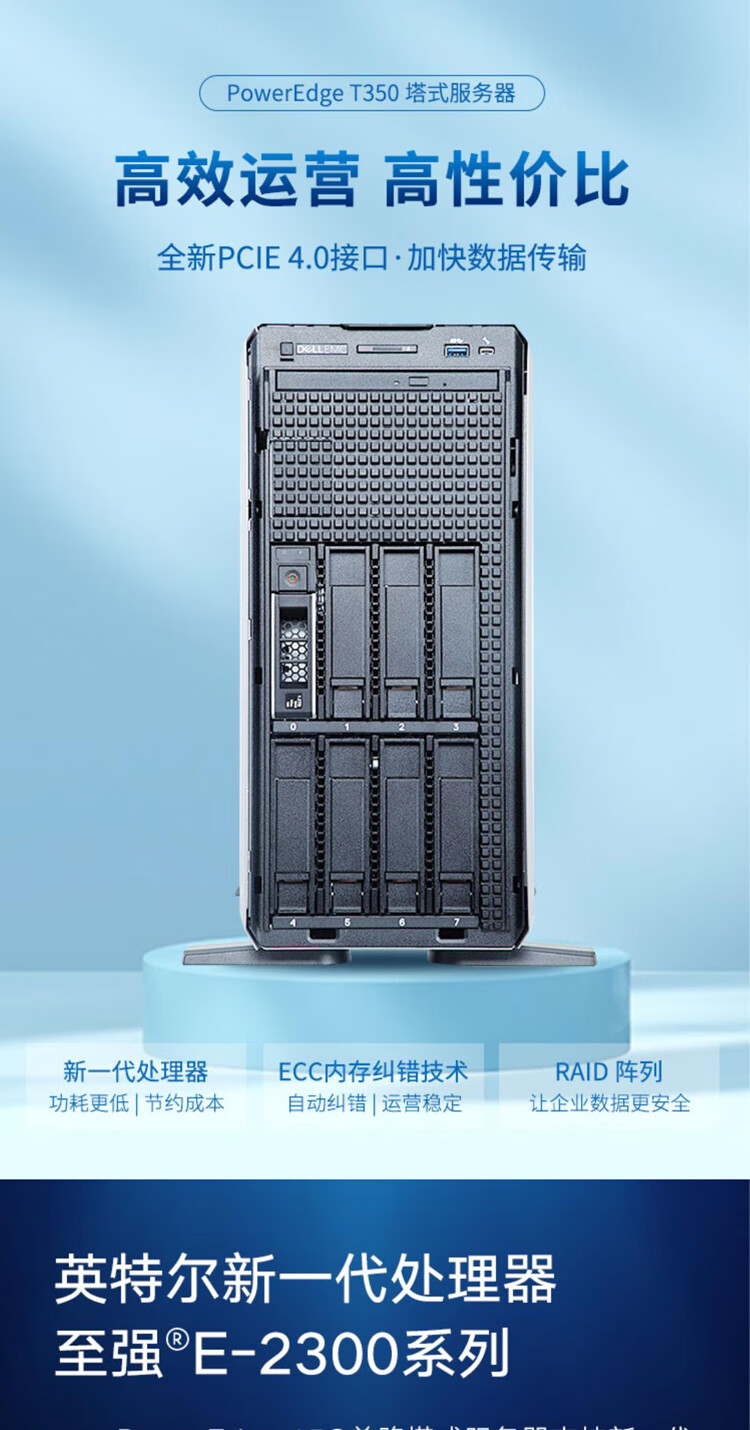 ¥4900.00戴爾(DELL) T350企業(yè)級(jí)塔式服務(wù)器主機(jī)ERP財(cái)務(wù)應(yīng)用虛擬化大數(shù)據(jù)分析商用臺(tái)式電腦 至強(qiáng)E-2356G 6核12線程 3.2G 32G丨1*2T企業(yè)級(jí)丨定制