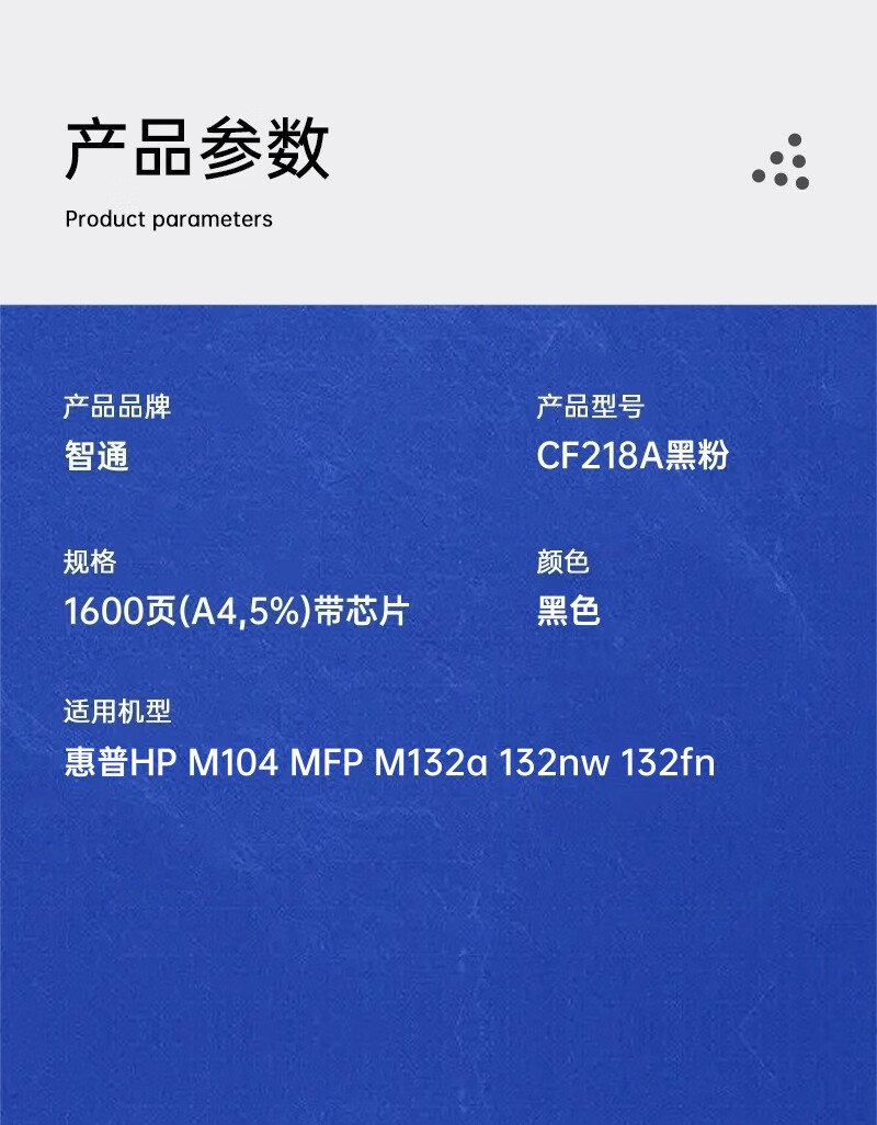 智通ZT CF218A黑粉(適用HP M104 MFP M132) 自營