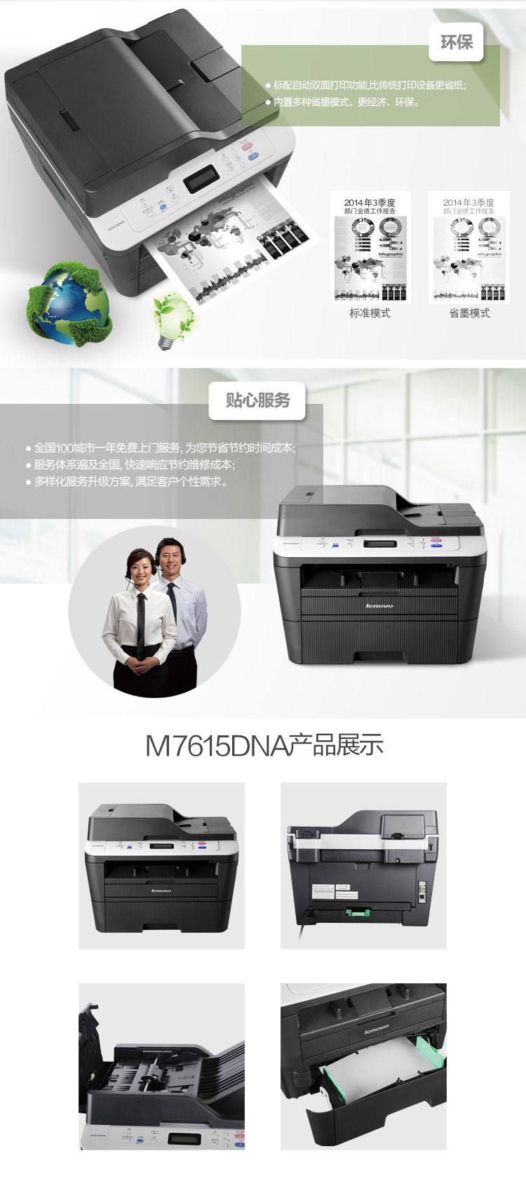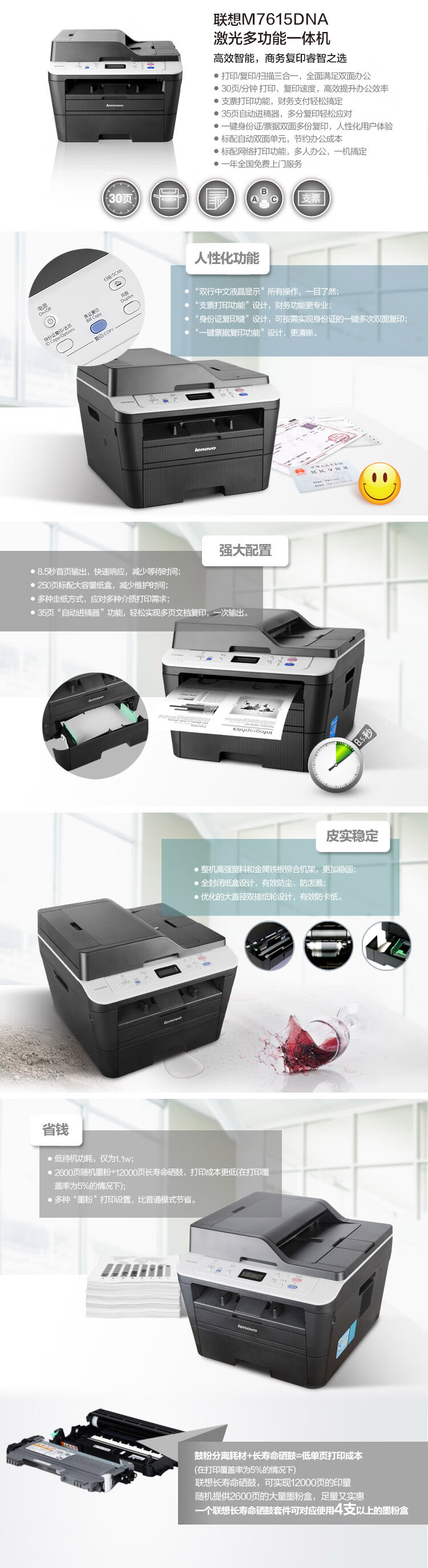 聯(lián)想(Lenovo)M7615DNA 黑白激光多功能一體機(jī) 自動(dòng)雙面打印 商用辦公家用 有線(xiàn)網(wǎng)絡(luò)(打印 復(fù)印 掃描) 自營(yíng)