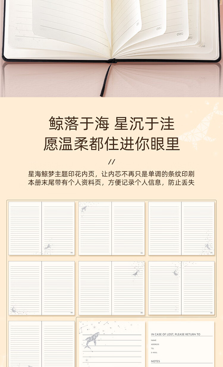 得力(deli)星海鯨夢系列精裝本皮面本 復古記事本日記本筆記本子文具 3339 自營