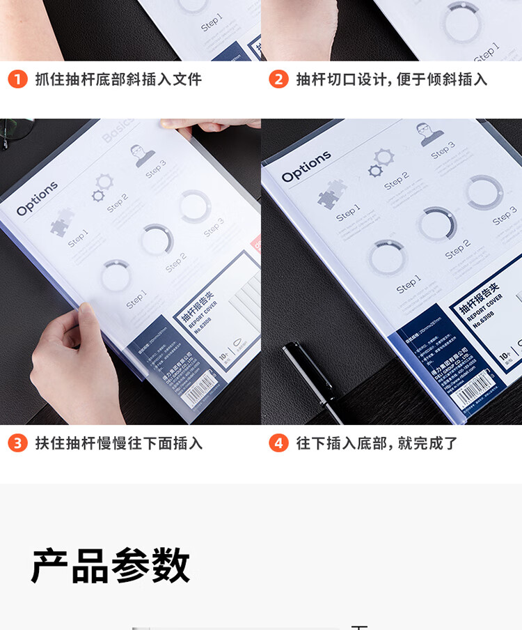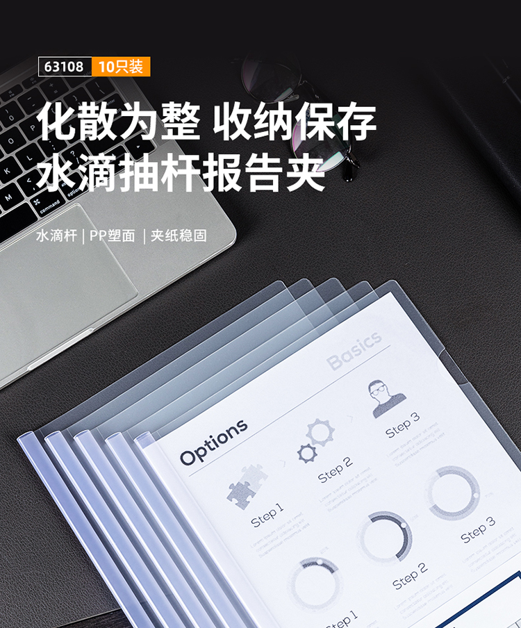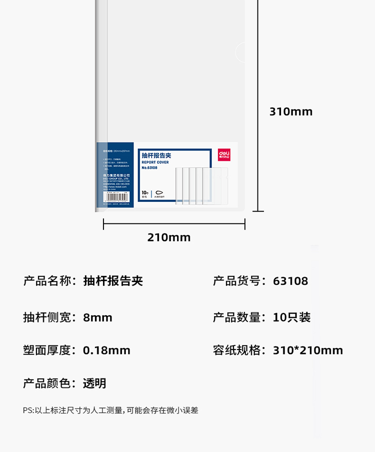 得力(deli)10只A4透明拉桿夾 8mm背寬水滴抽桿夾報(bào)告夾 學(xué)生考試收納 63108 辦公用品 自營(yíng)