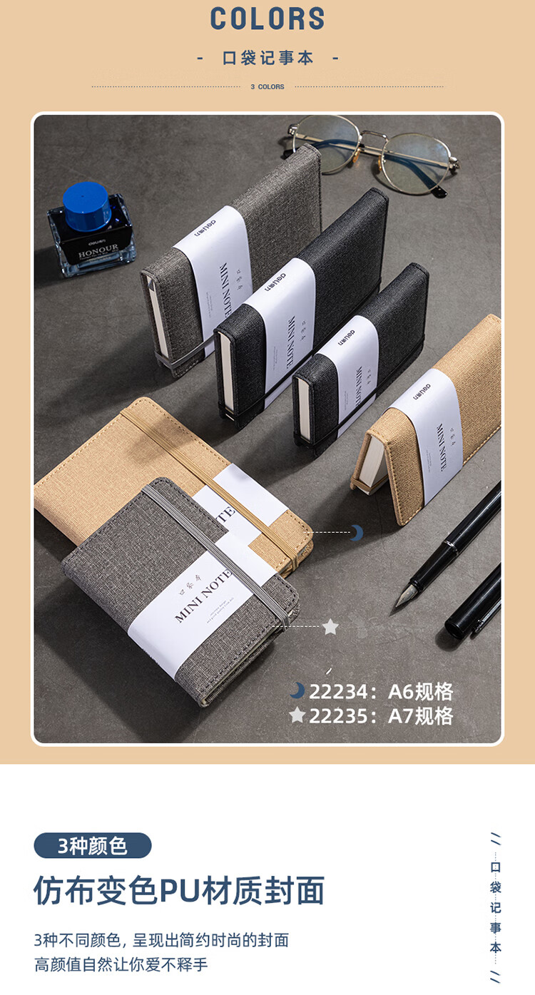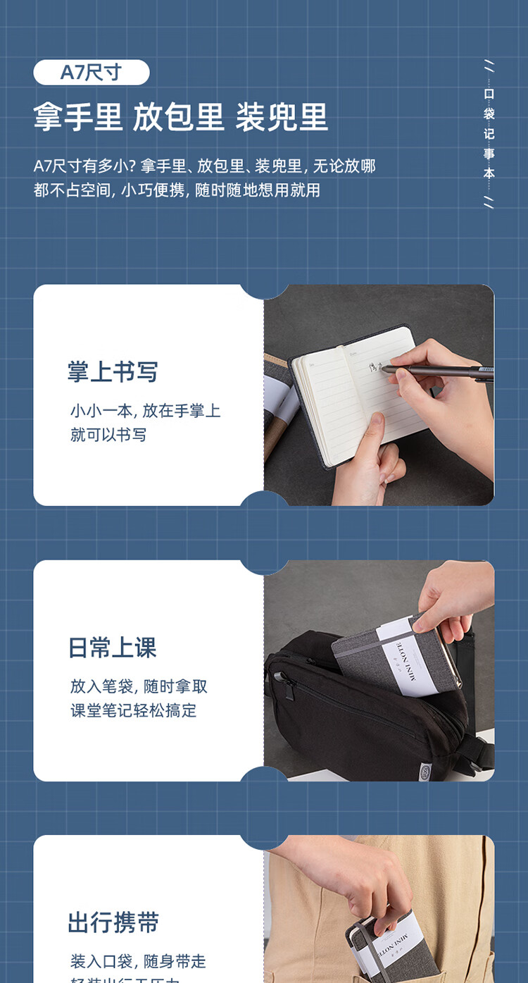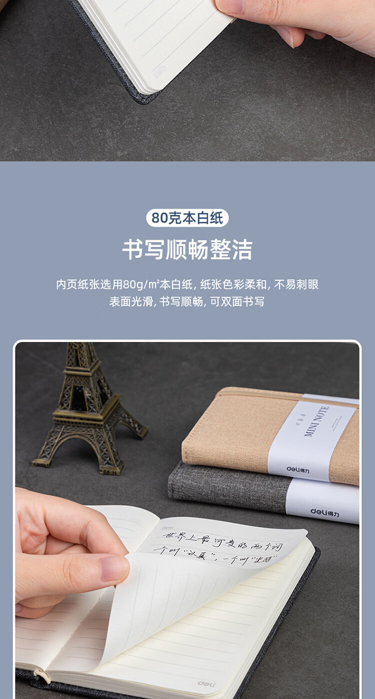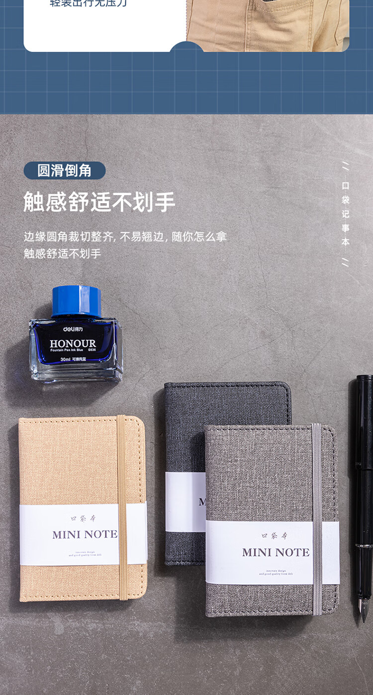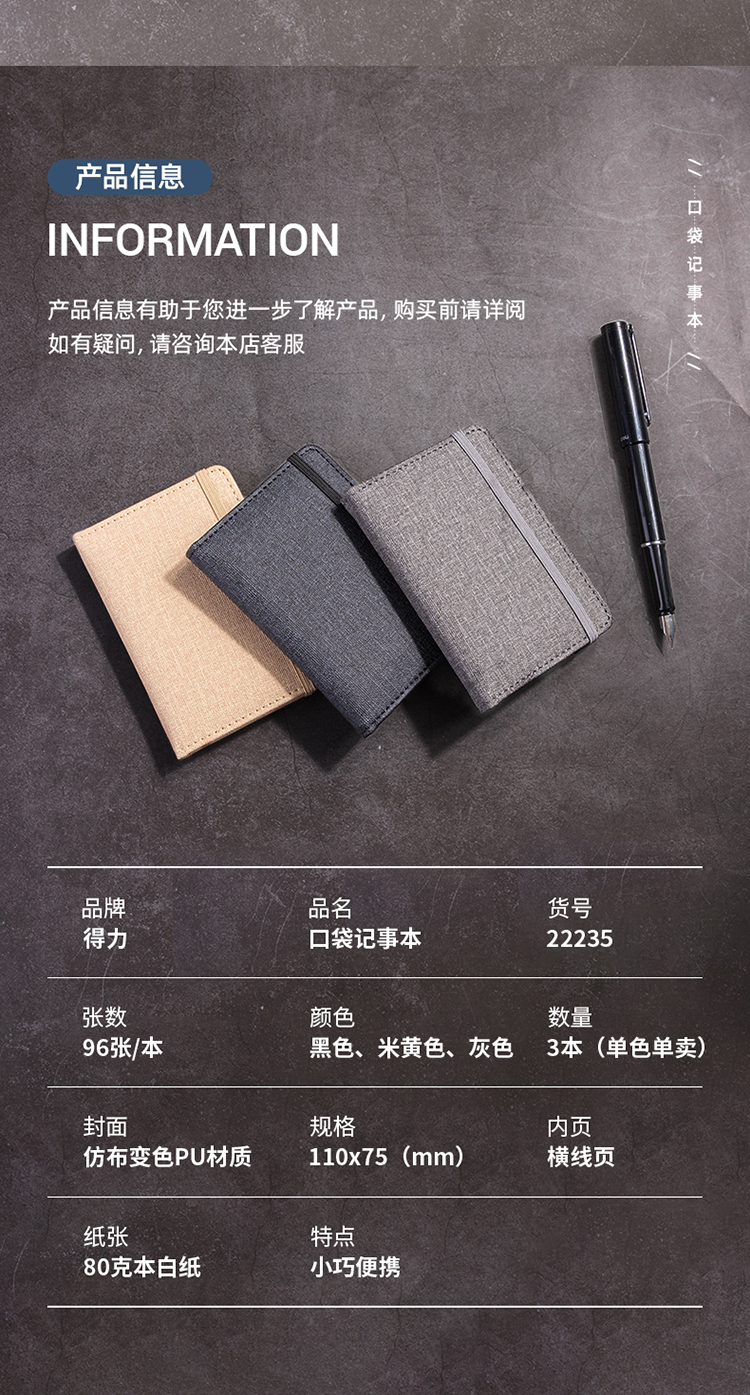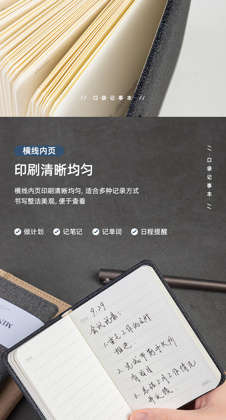 得力(deli)A7/96張便攜筆記本子 創(chuàng)意型小號口袋本迷你學生小本子記事本日記單詞手賬本 黑色22235 自營