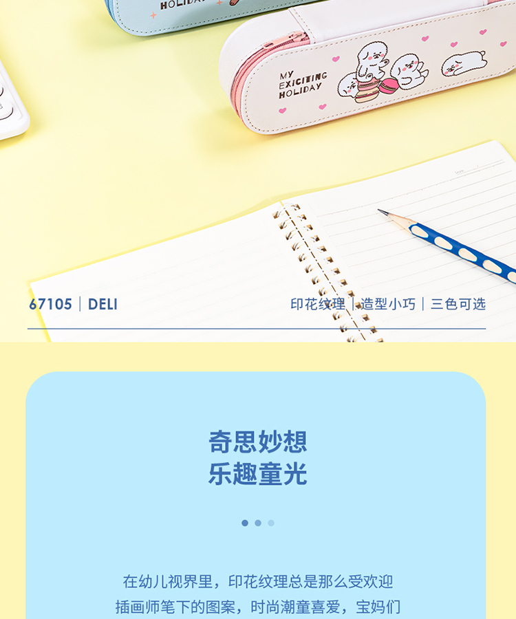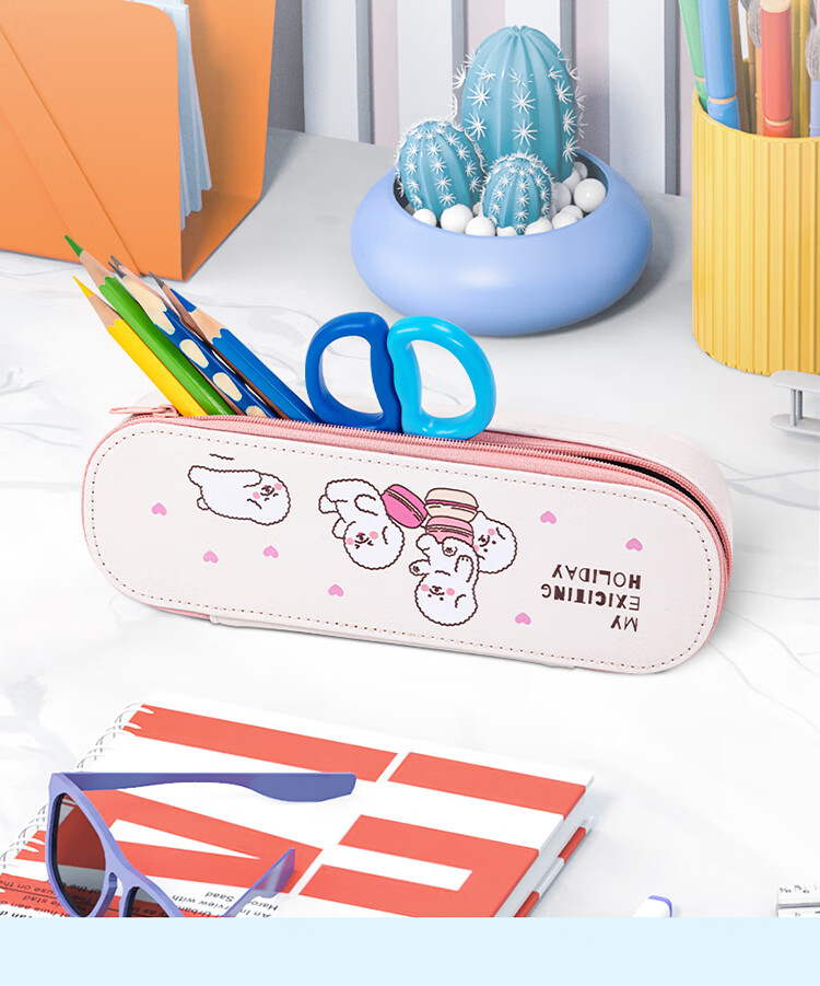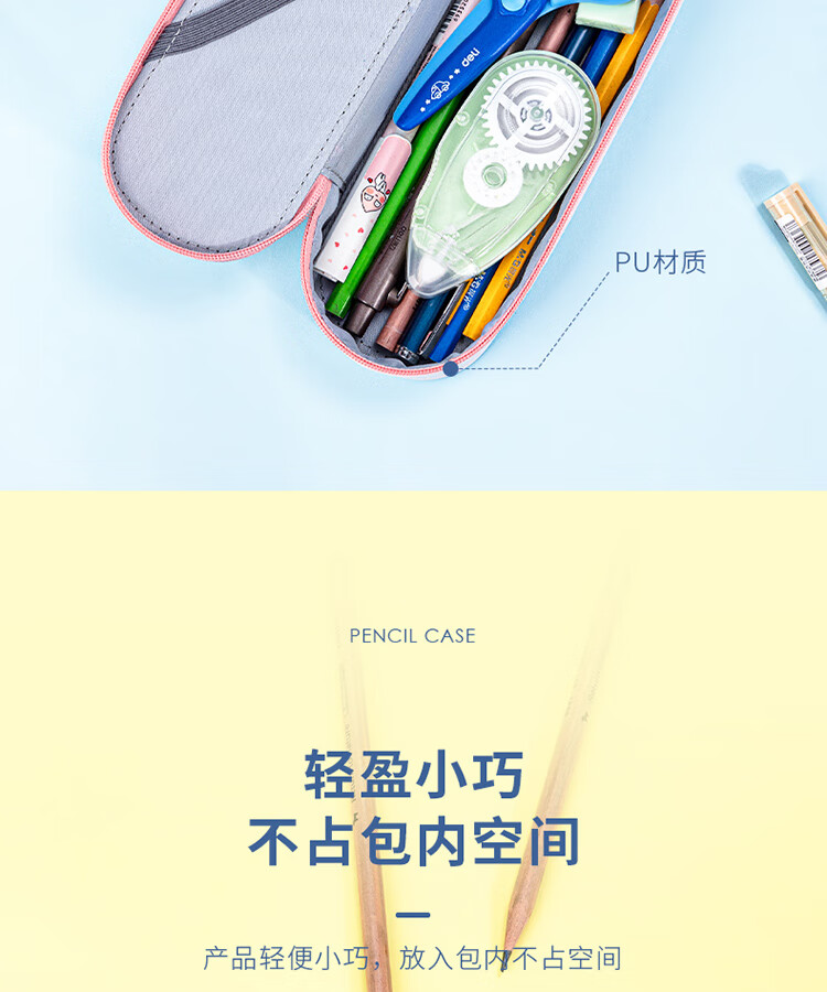 得力(deli)多功能文具盒 學(xué)生可愛大容量文具盒 膚感PU文具袋 可愛創(chuàng)意收納袋 粉67105 自營